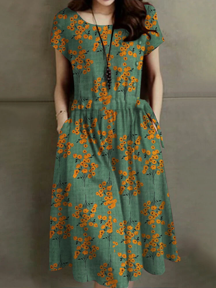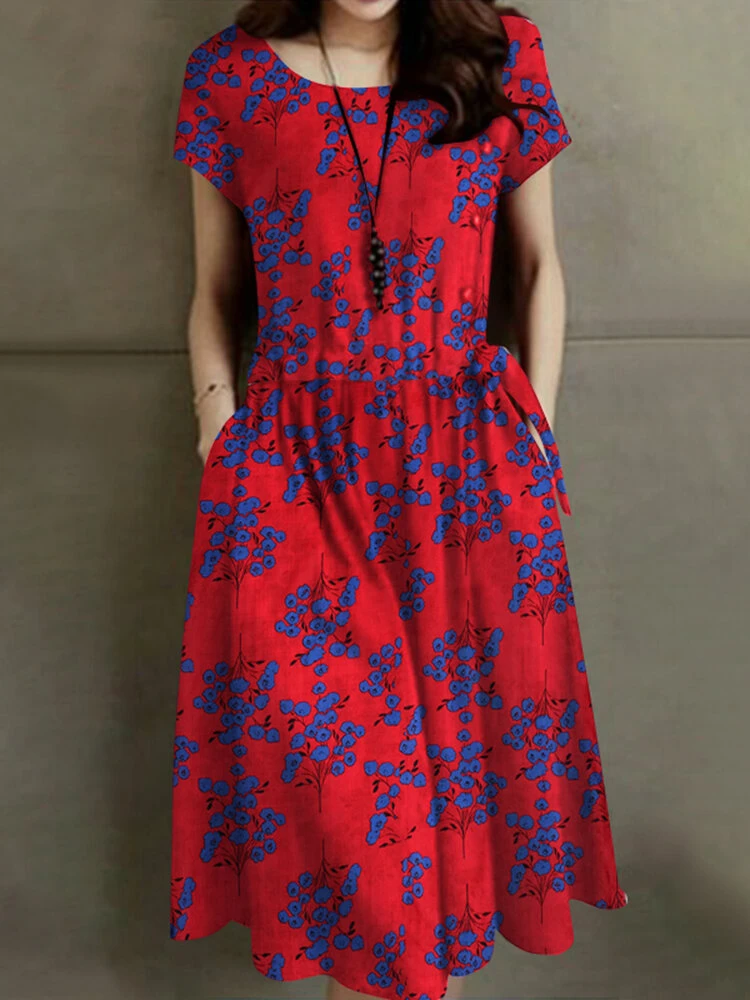 Color: Green, Red, Gray Style: Casual Occasion: Everyday Material: Polyester Pattern: Floral Print Design Element: Pocket, Drawstring Season: Summer Collar: Crew Neck Sleeves Length: Short Sleeve Package Included:1*Dress