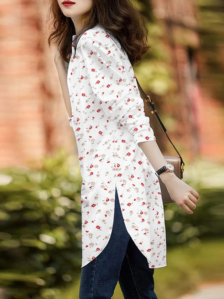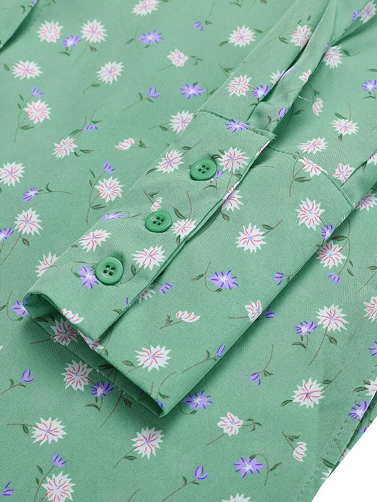 Color: White, Green, Black Material: Polyester Pattern: Floral Print Style: Casual Sleeves Length: Long Sleeve Collar: Stand Collar Season: Autumn, Spring Package Included:1*Blouse