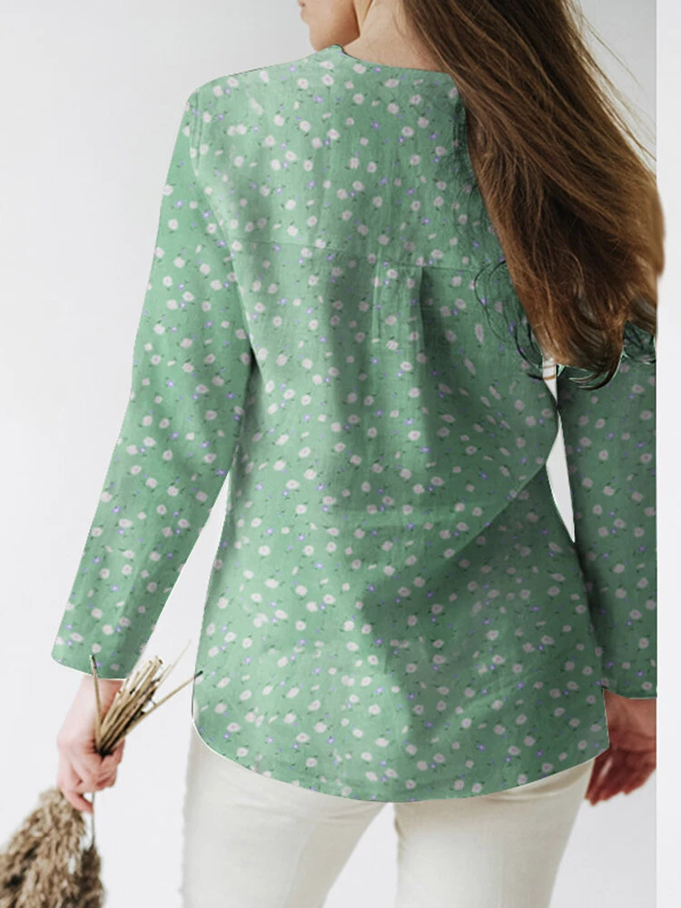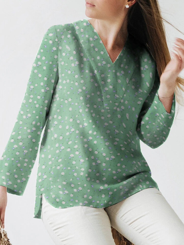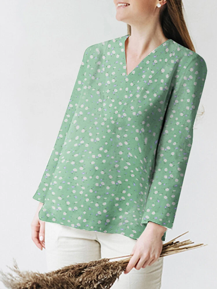 Color: White, Green, Black Material: Polyester Pattern: Floral Print Style: Casual Sleeves Length: Long Sleeve Collar: V-neck Season: Autumn, Spring Package Included:1*Blouse