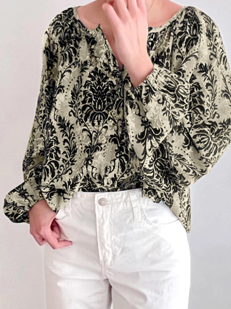 Color: Brown, Blue, Green, Black Material: Polyester Pattern: Calico Occasion: Everyday Style: Casual Sleeves Length: Long Sleeve Collar: Crew Neck Season: Autumn, Spring Design Element: Button Front Package Included:1*Blouse