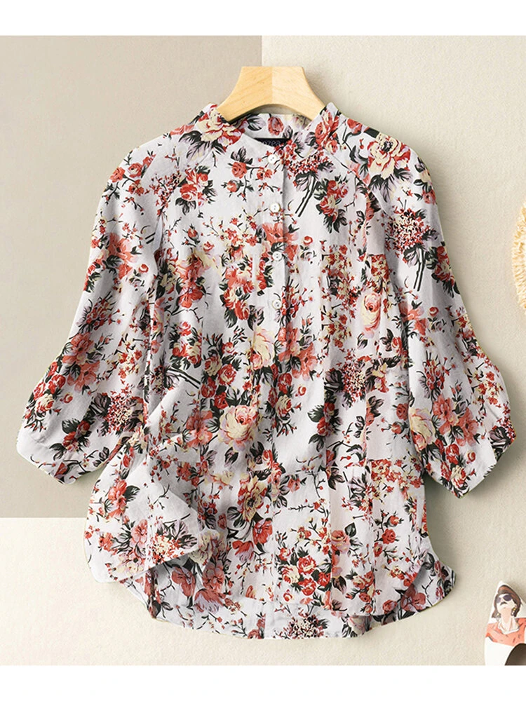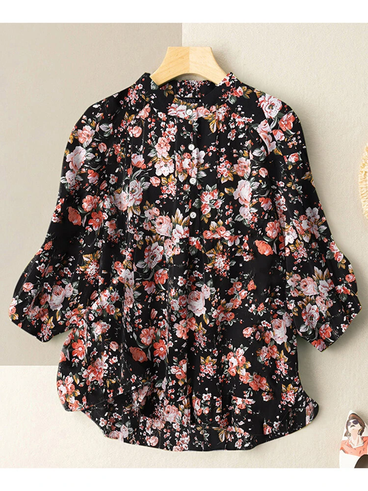 Be the first to review “Allover Flower Print Casual Stand Collar Button Blouse” Cancel reply