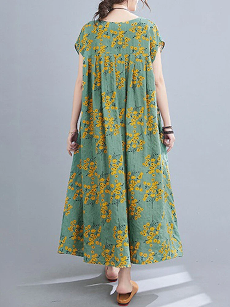 Color: Green, Light Green Style: Casual Occasion: Everyday Material: Polyester Pattern: Calico Season: Summer Collar: Crew Neck Sleeves Length: Short Sleeve Fit Type: Loose Package Included:1*Dress