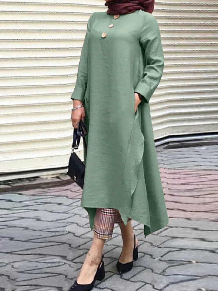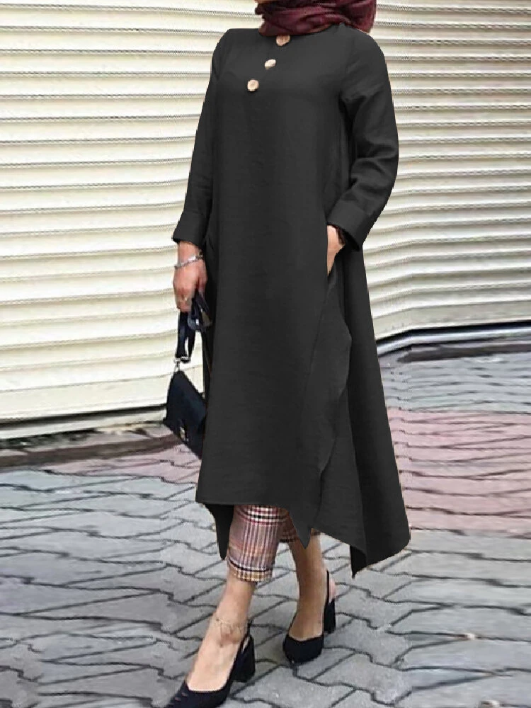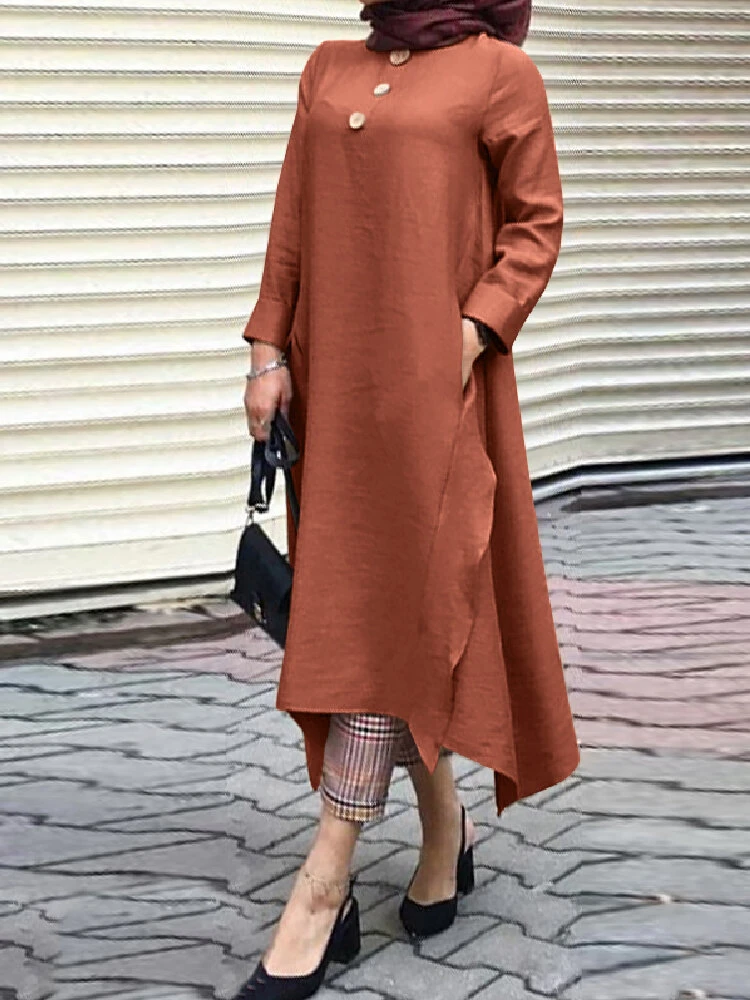 Asymmetrical Solid Color Long Sleeve Plus Size Dress With Pockets
