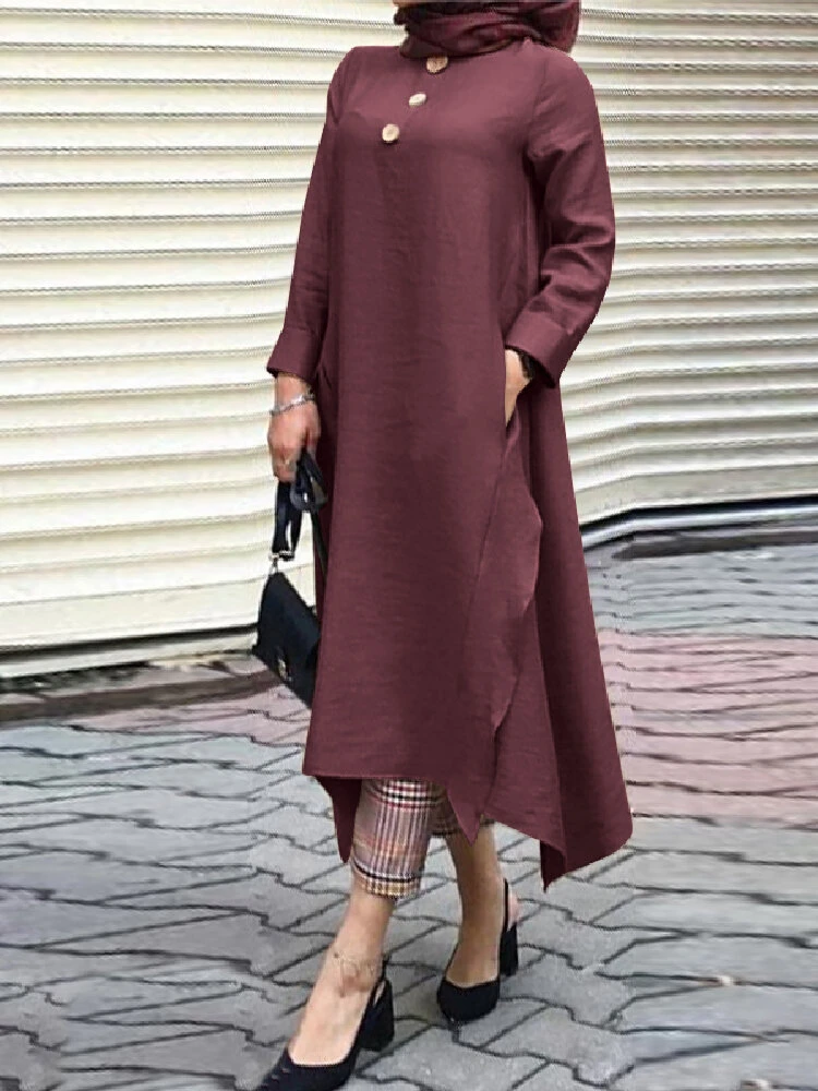 Be the first to review “Asymmetrical Solid Color Long Sleeve Plus Size Dress With Pockets” Cancel reply