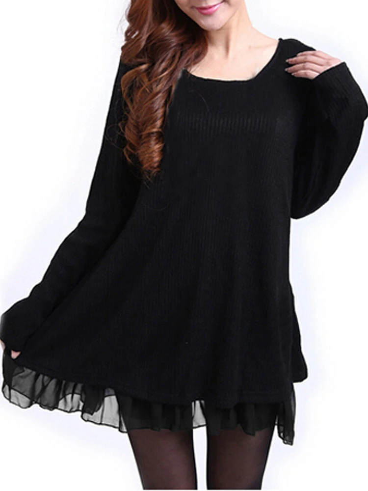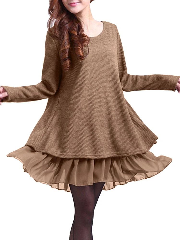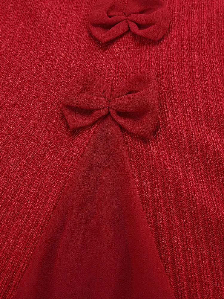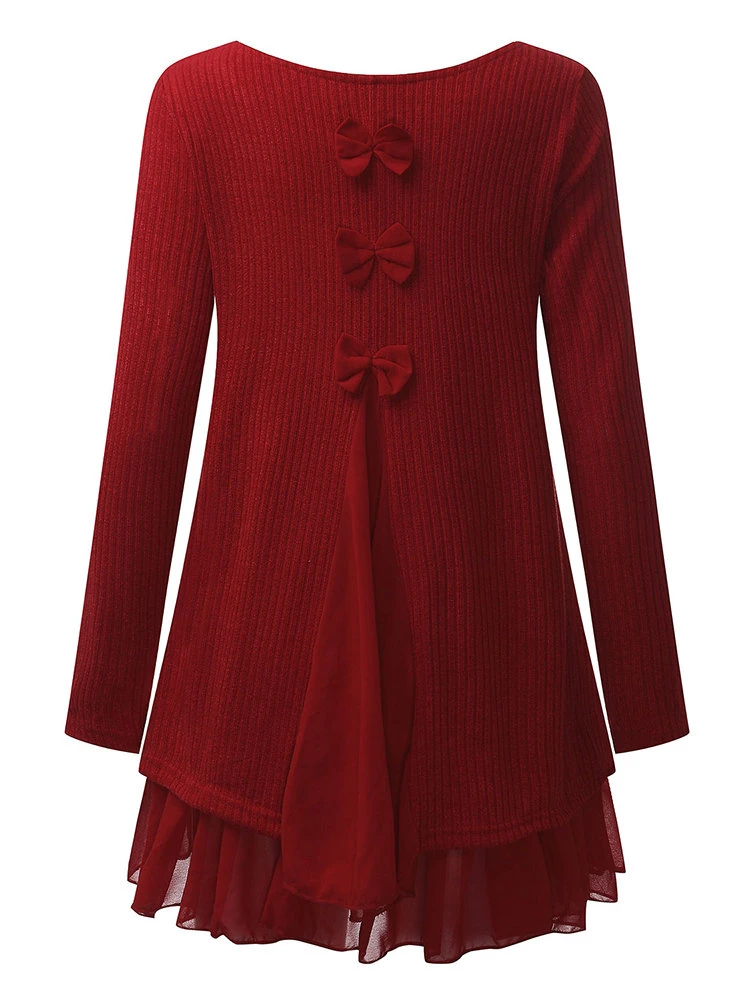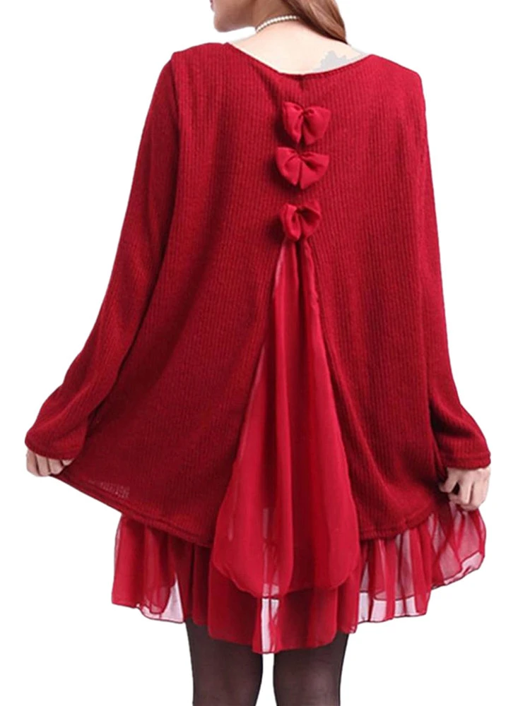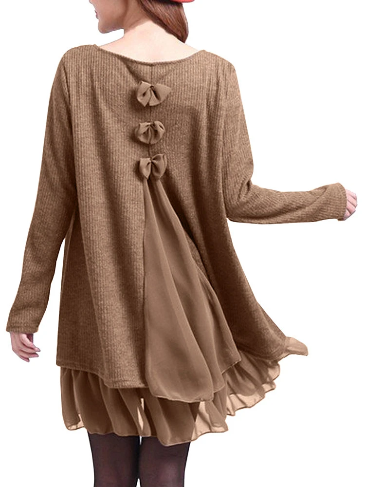 Casual Chiffon Patchwork Back Bow Double Layer Flared Blouse