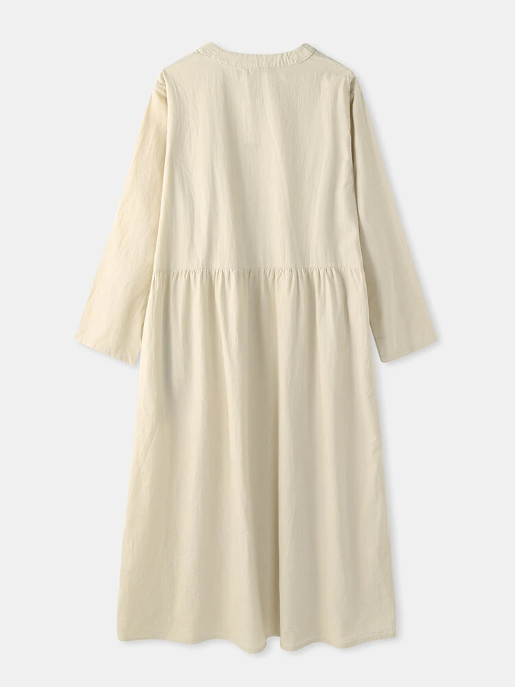 Casual O-neck Long Sleeve Button Plus Size Dress With Pockets