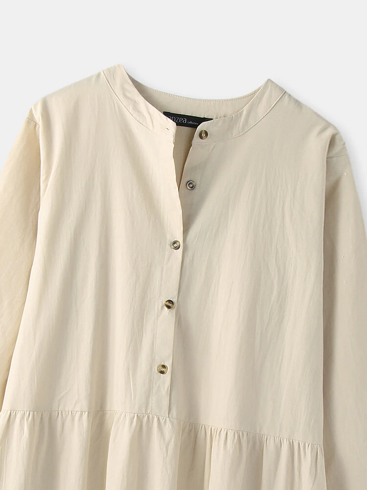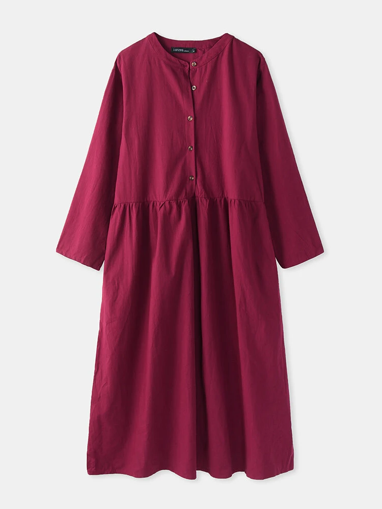 Color: Black, Wine Red, Beige Occasion: Casual Sleeves Length: Long Sleeve Season: Autumn, Spring Material: Cotton Design Element: Button Package included:1*Dress