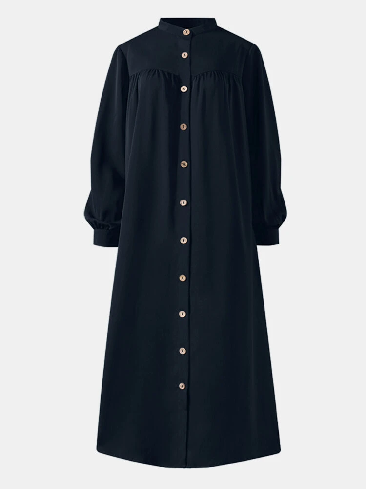 Casual Solid Color Crewneck Button Plus Size Dress With Pockets