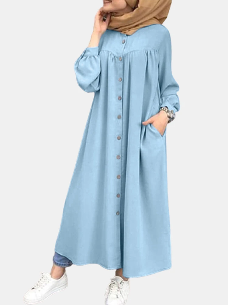 Be the first to review “Casual Solid Color Crewneck Button Plus Size Dress With Pockets” Cancel reply