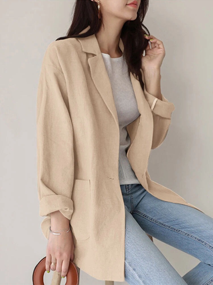 Casual Solid Color Lapel Long Sleeve Plus Size Jackets With Button