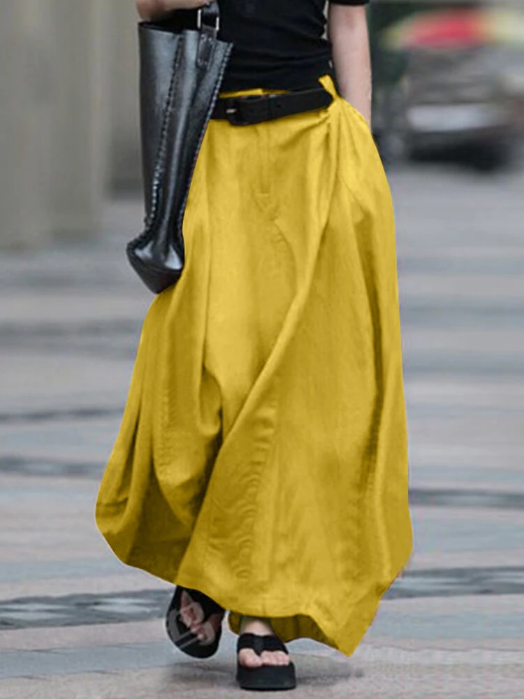 Casual Solid Color Loose Elastic Waist Plus Size Skirt