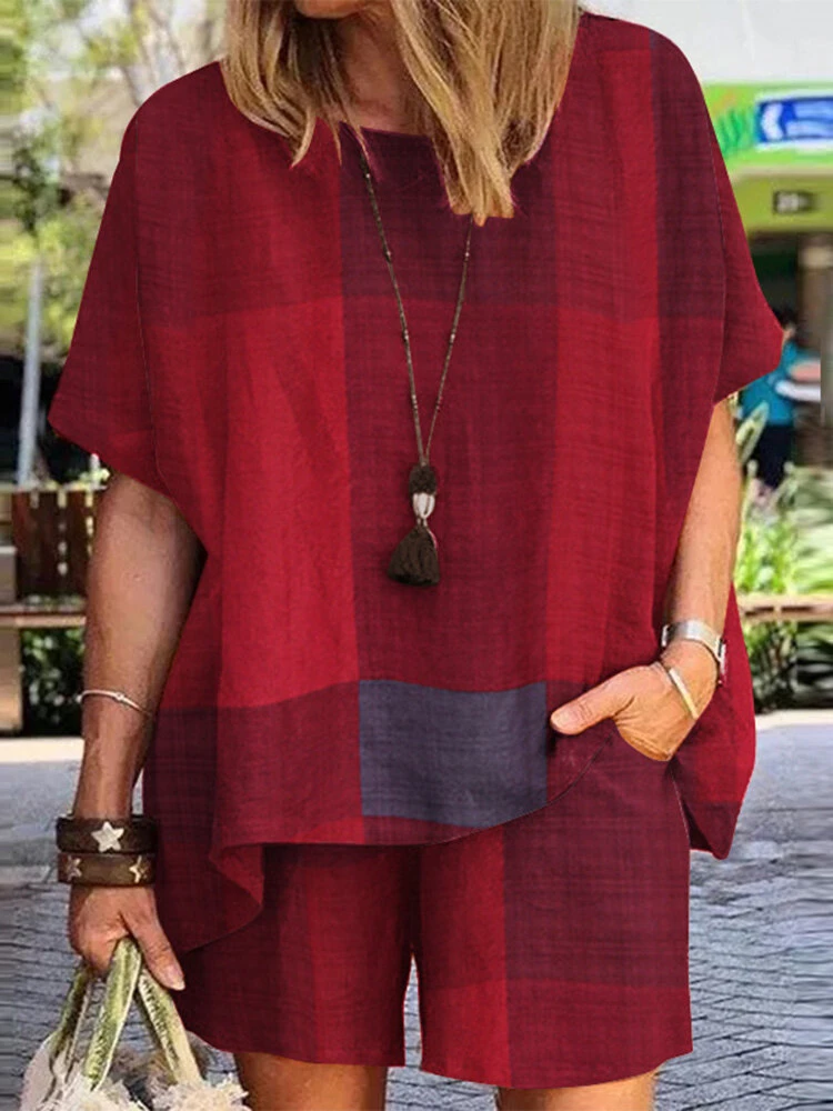 Check Pattern Pocket Dolman Sleeve Two Pieces Suit