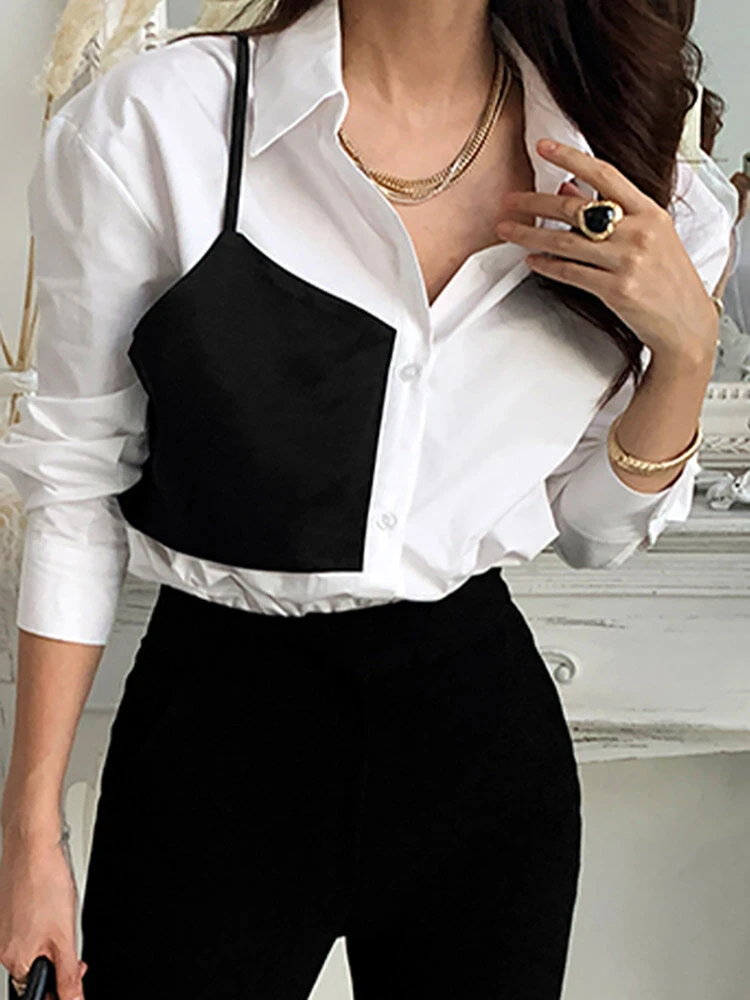 Contrast Panel Button Front Long Sleeve Lapel Shirt