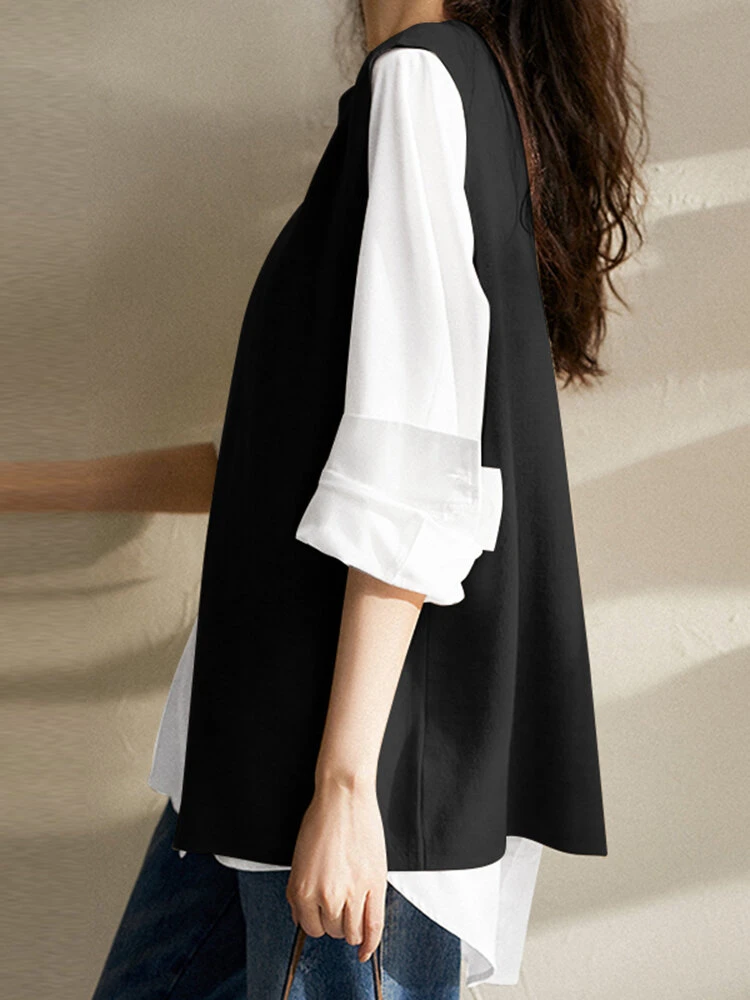 Be the first to review “Contrast Patchwork Long Sleeve Crew Neck Casual Blouse” Cancel reply