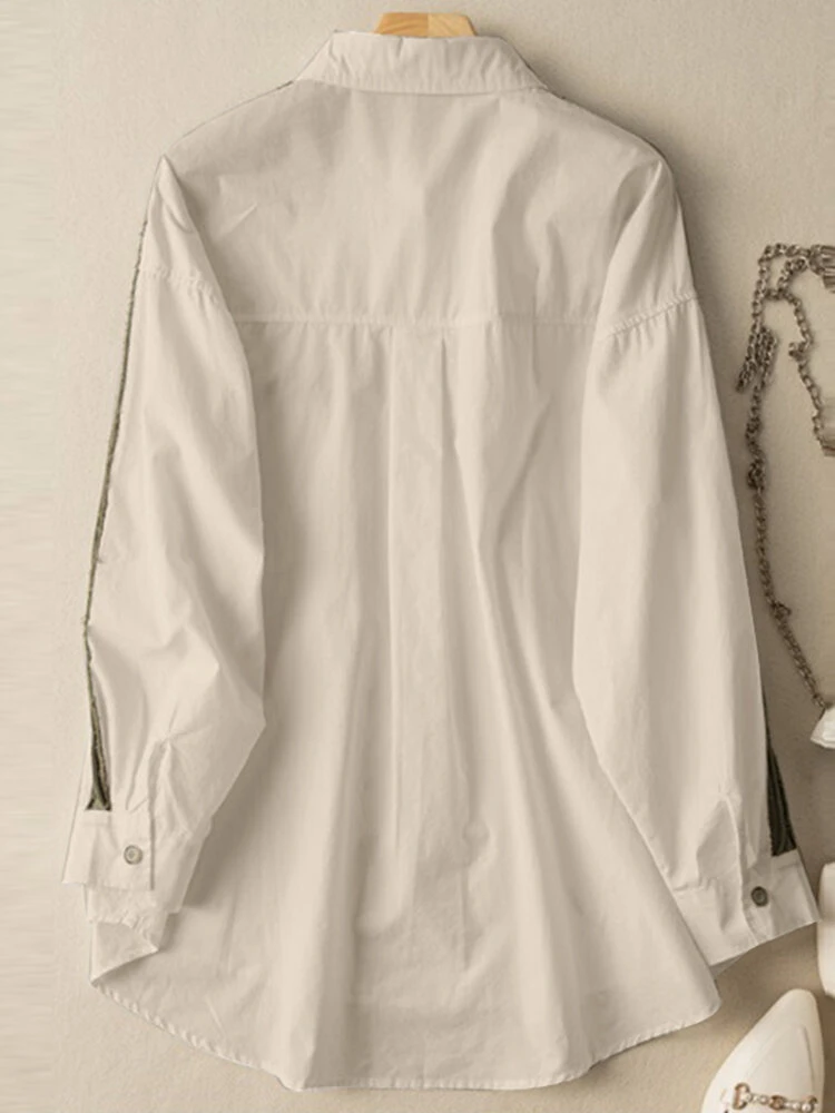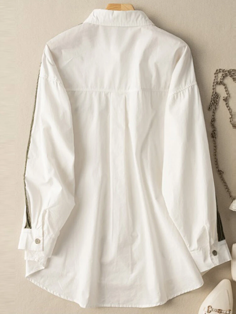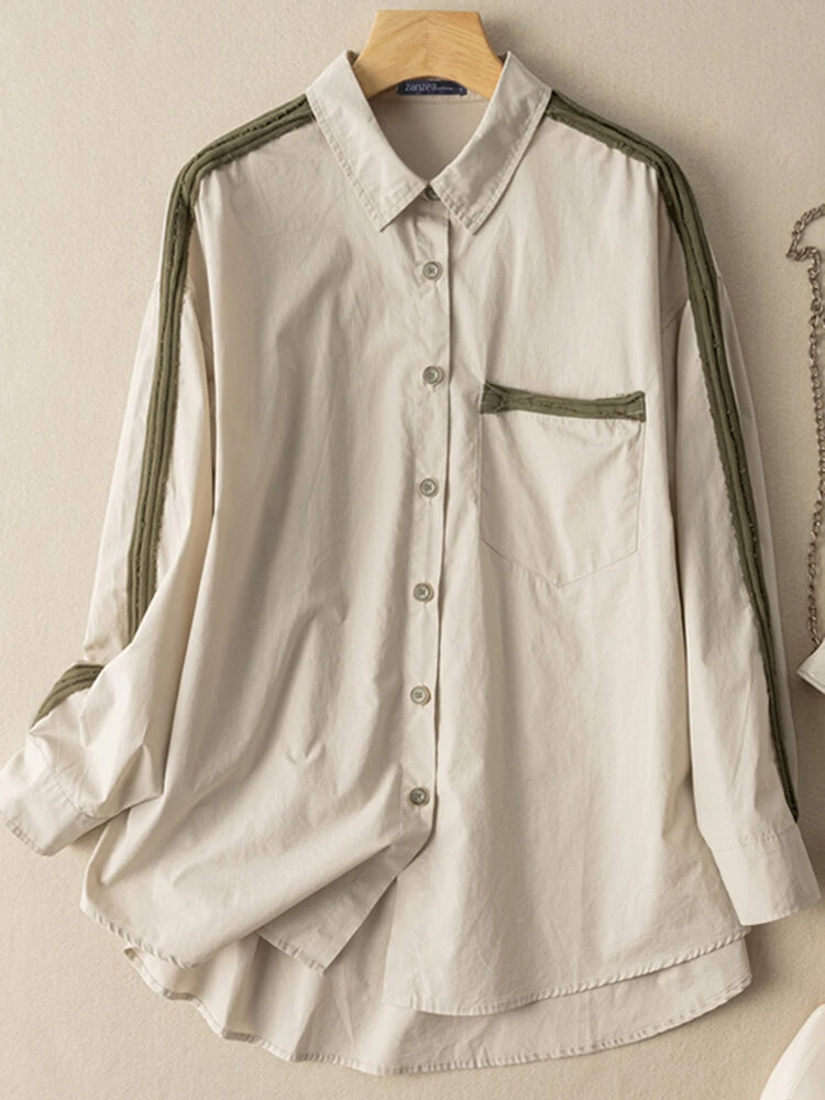 Contrast Pocket Button Front Lapel Long Sleeve Shirt