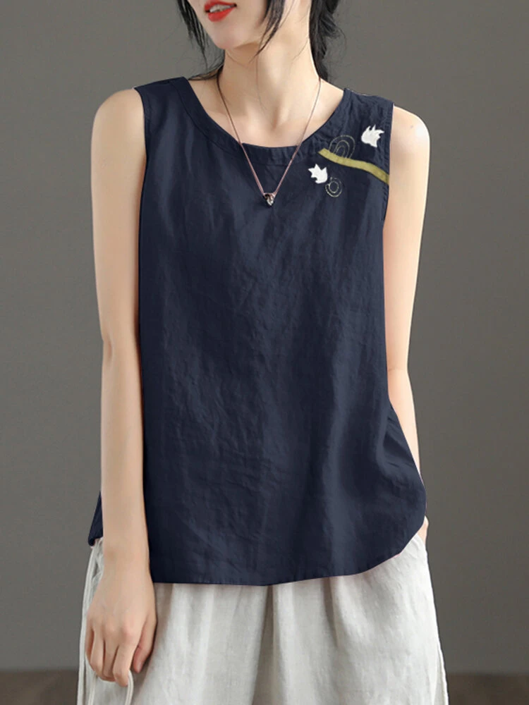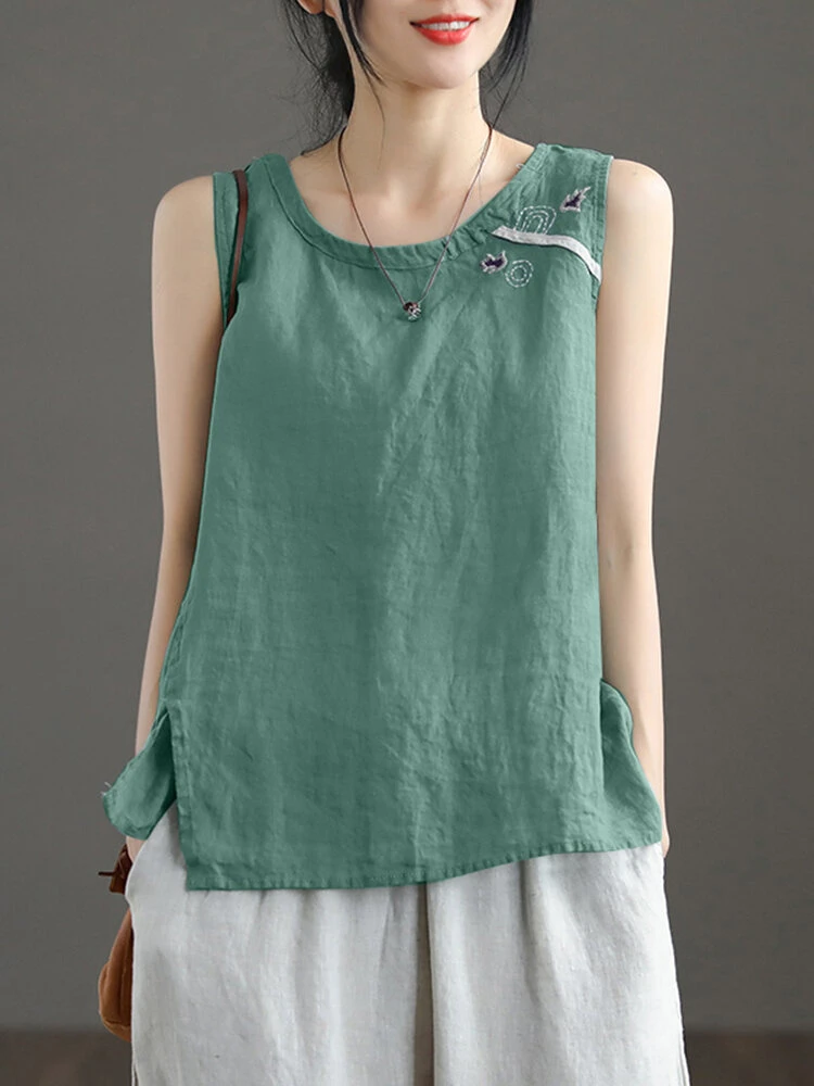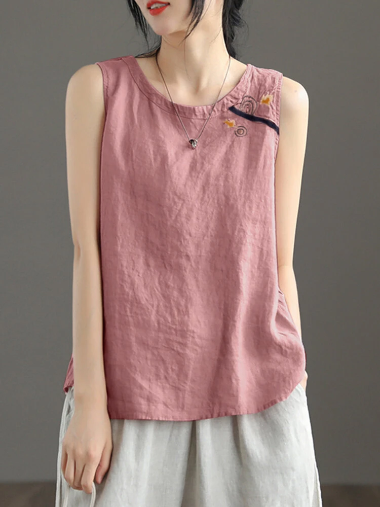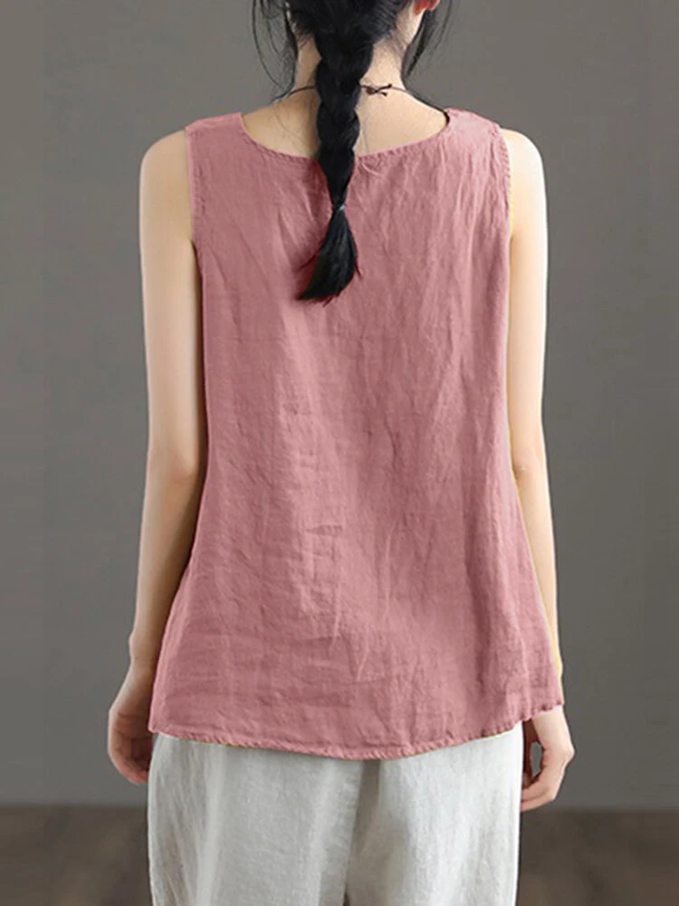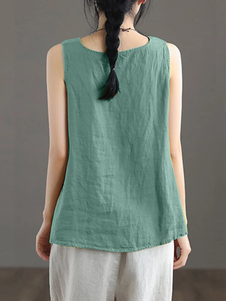 Color: Pink, Apricot, Green, Navy, Black Material: Cotton, Linen Occasion: Everyday Style: Casual Sleeves Length: Sleeveless Collar: Crew Neck Season: Summer Package Included:1*Tank Top