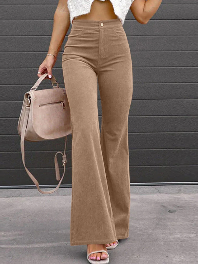 Corduroy Solid Pocket High Waist Bootcut Pants