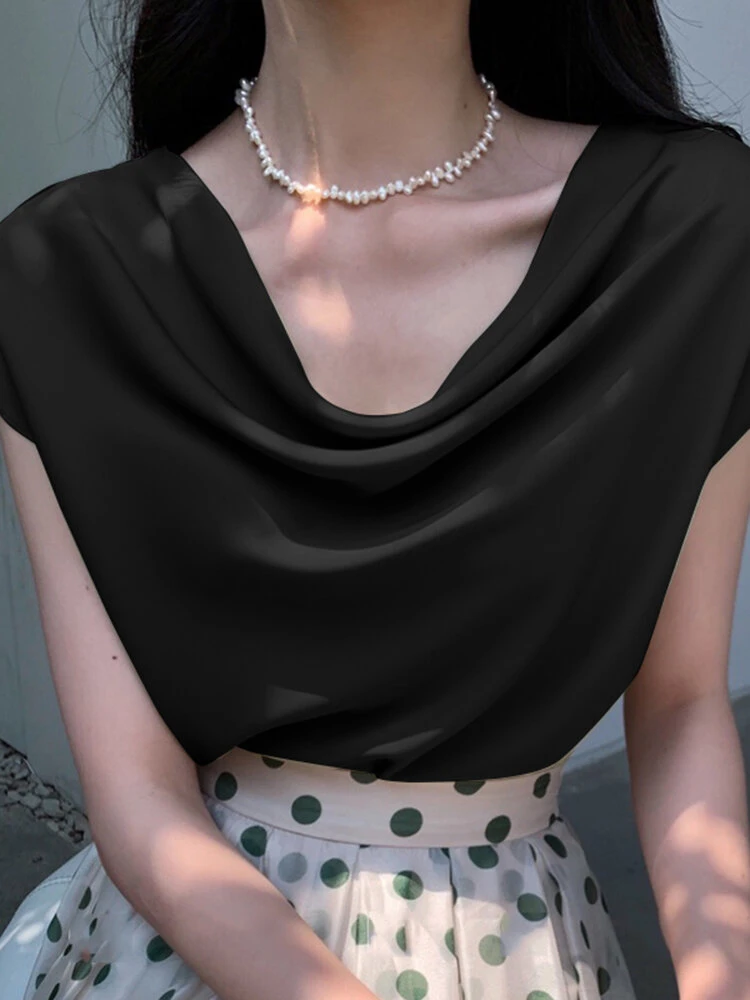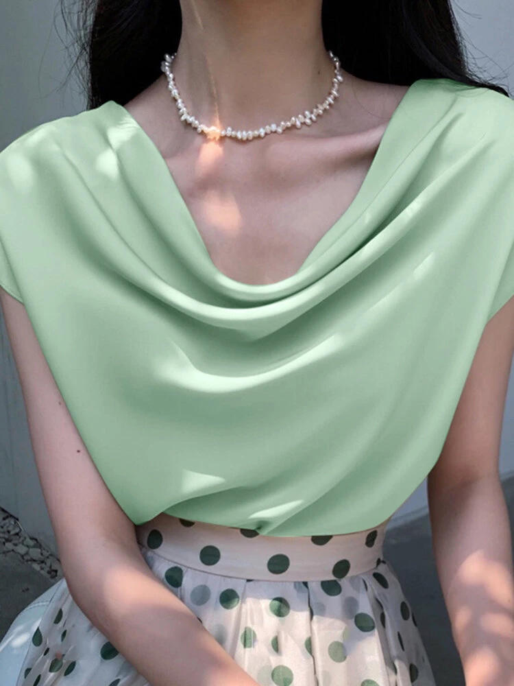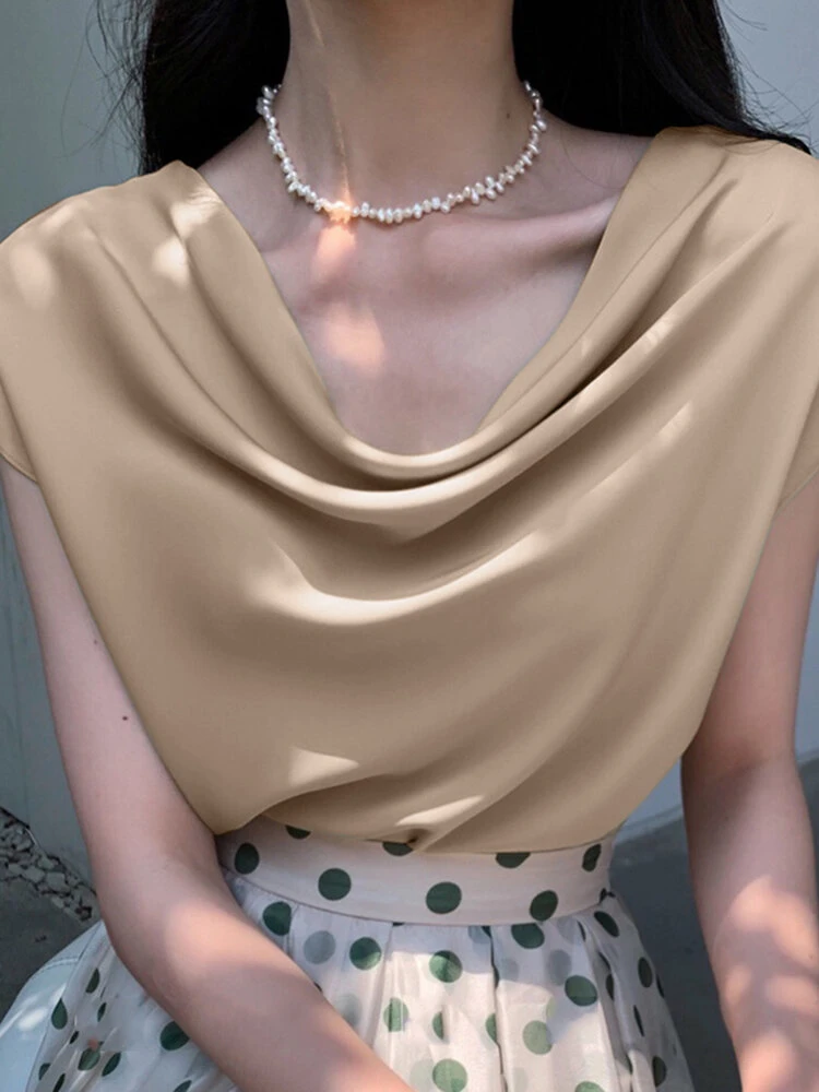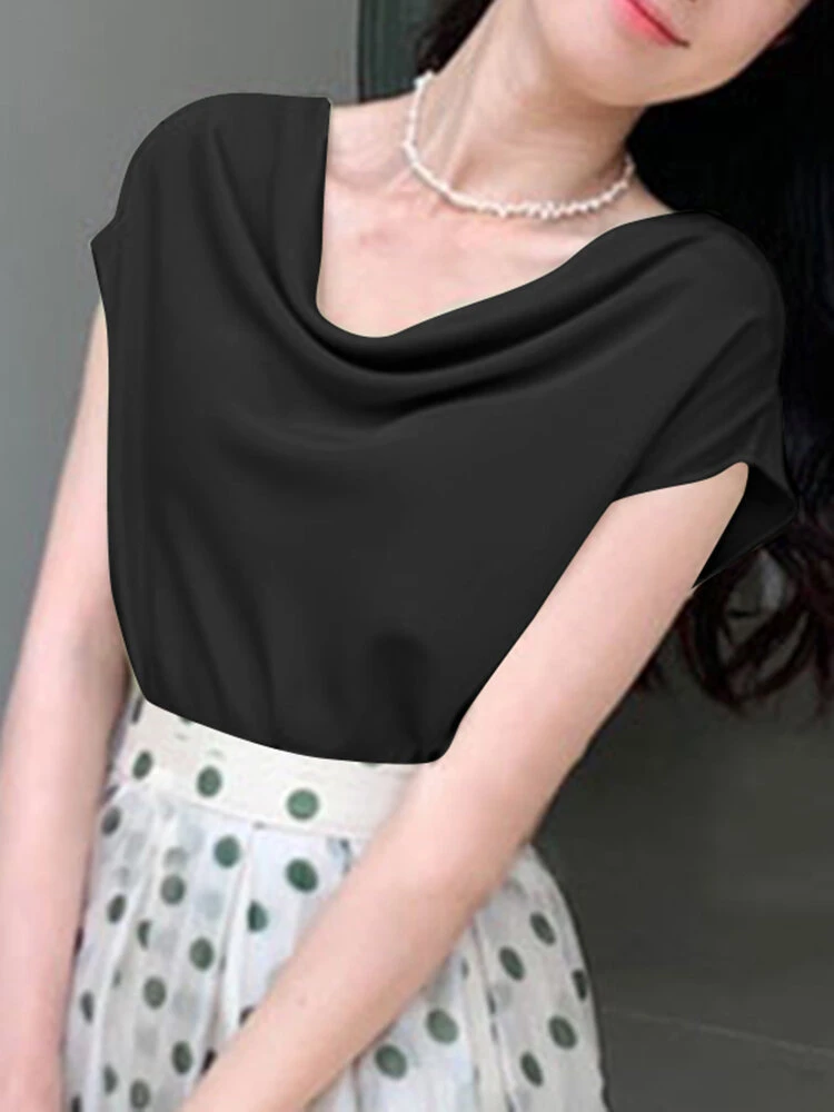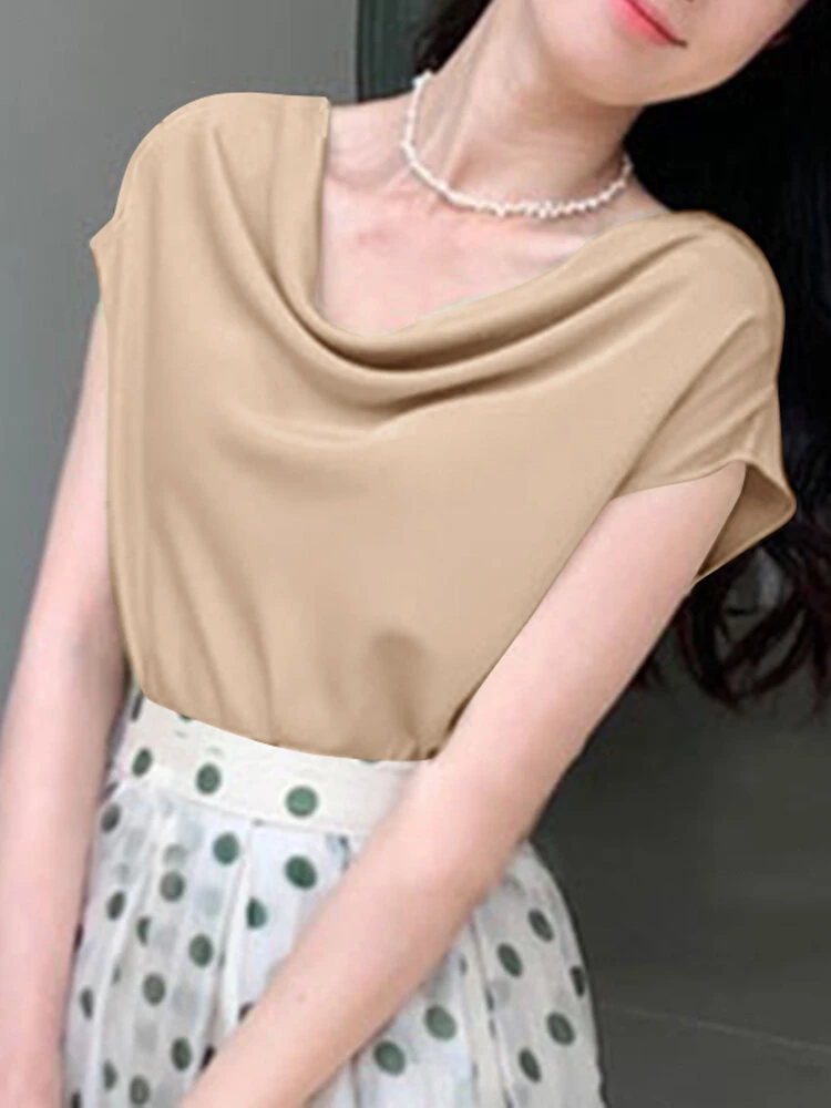 Be the first to review “Cowl Neck Solid Satin Short Sleeve Blouse For Women” Cancel reply