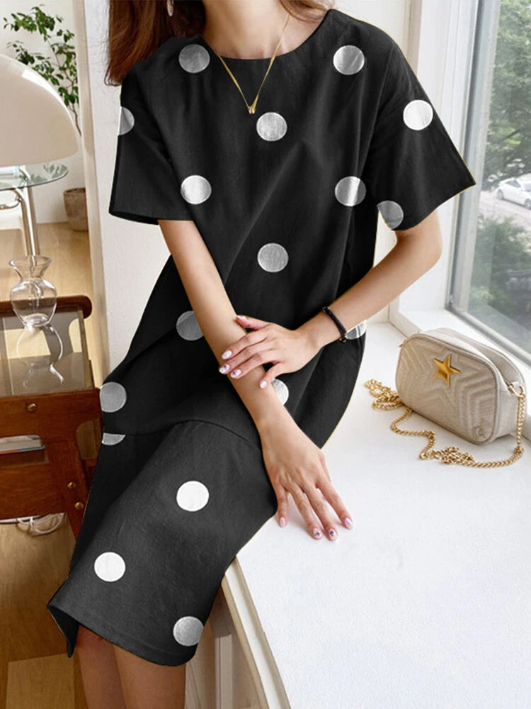 Be the first to review “Dot Print Ruffle Hem Short Sleeve Crew Neck A-line Dress” Cancel reply