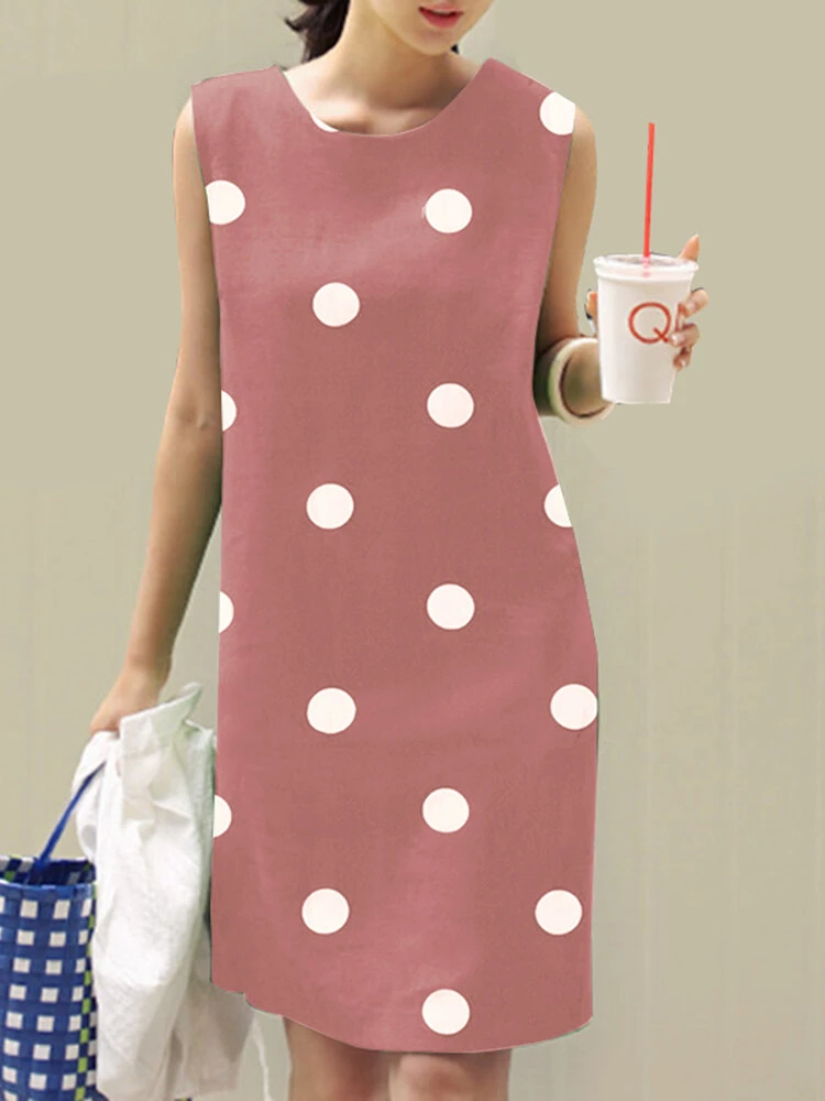 Color: Blue, Yellow, Pink, Red Style: Casual Occasion: Everyday Material: Polyester Pattern: Polka Dot Season: Summer Collar: Crew Neck Sleeves Length: Sleeveless Package Included:1*Dress