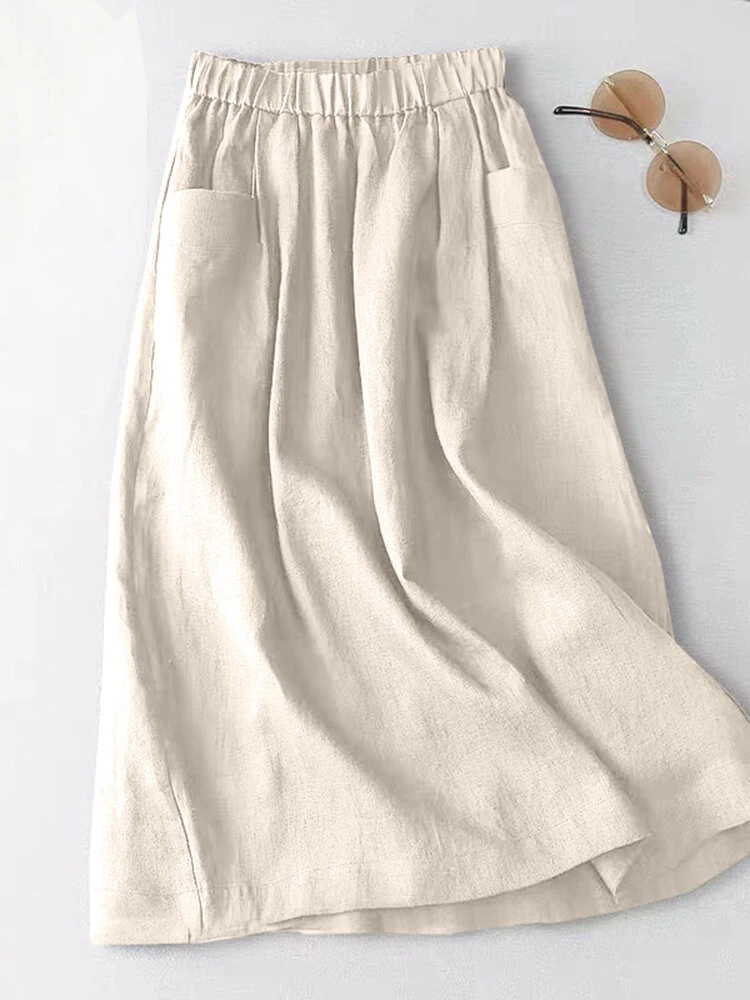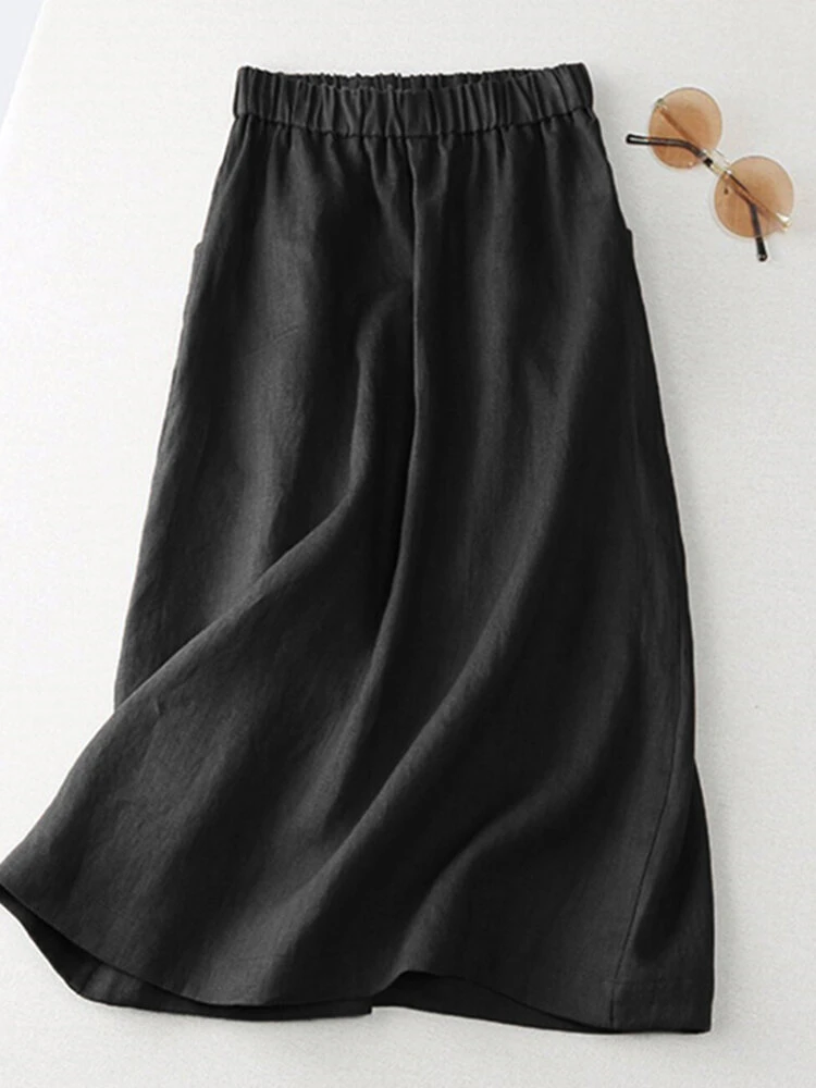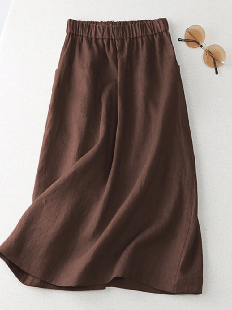 Color: Black, Apricot, Brown Material: Linen, Cotton Season: Summer Thickness: Moderate Design Element: Pocket Style: Vintage Package Included:1*Skirt