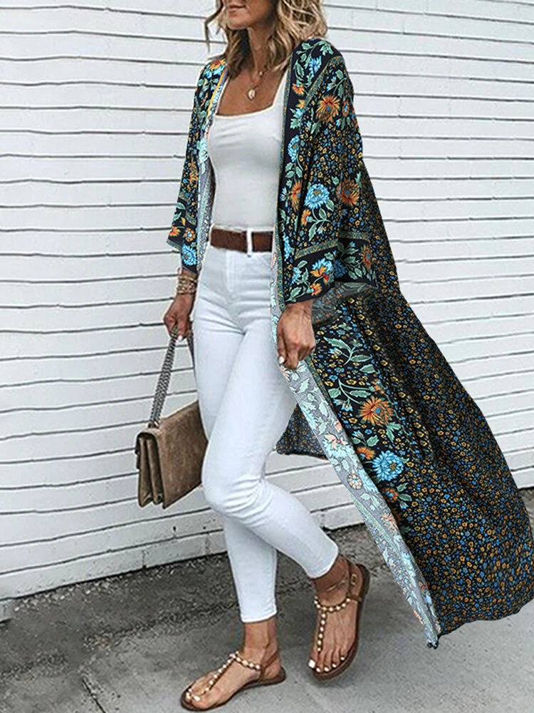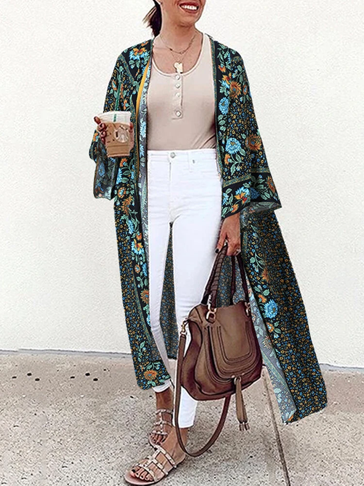 Floral Print Long Sleeve Plus Size Casual Cardigan For Women
