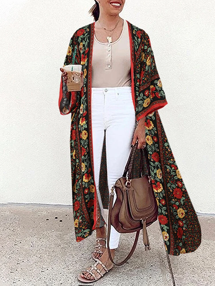 Color: Black, White, Red, Navy Blue Occasion: Casual Pattern: Floral Print Season: Autumn, Spring Design Element: Print Package included:1*Cardigan