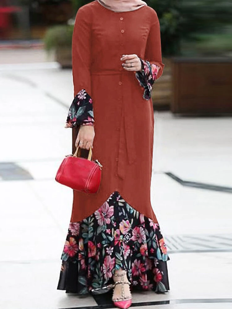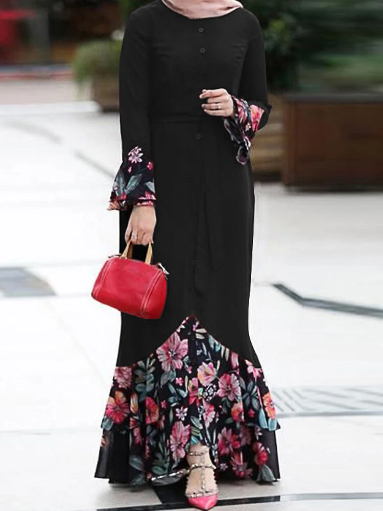 Be the first to review “Floral Print Patchwork Ruffle Plus Size Button Dress With Belt” Cancel reply