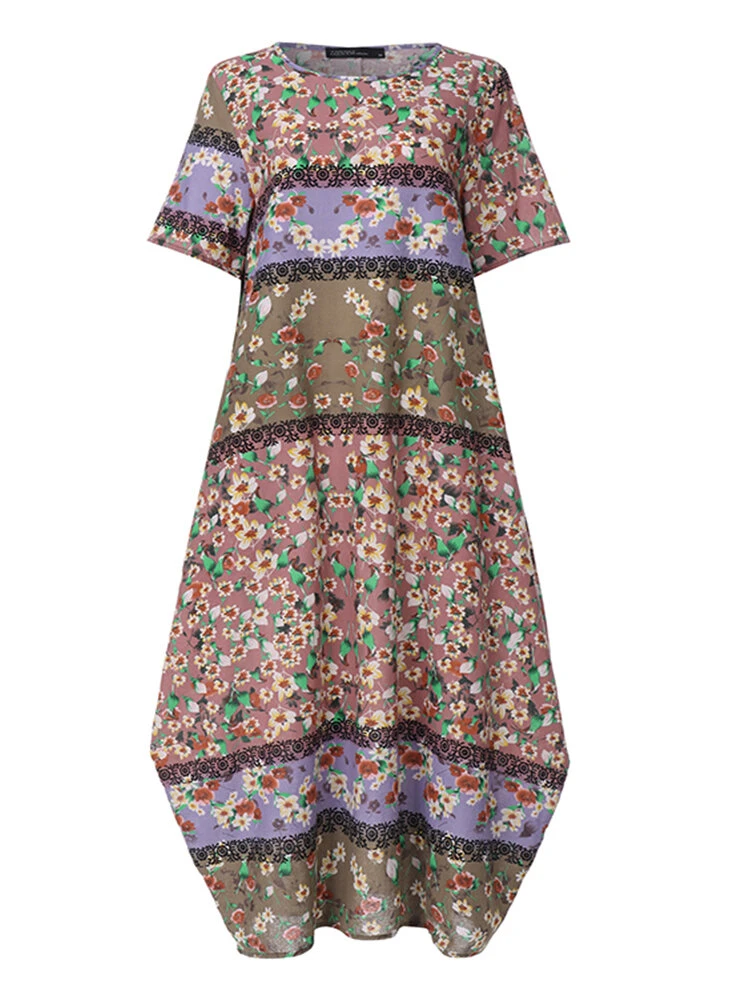 Floral Print Patchwork Short Sleeve Plus Size Baggy Dress
