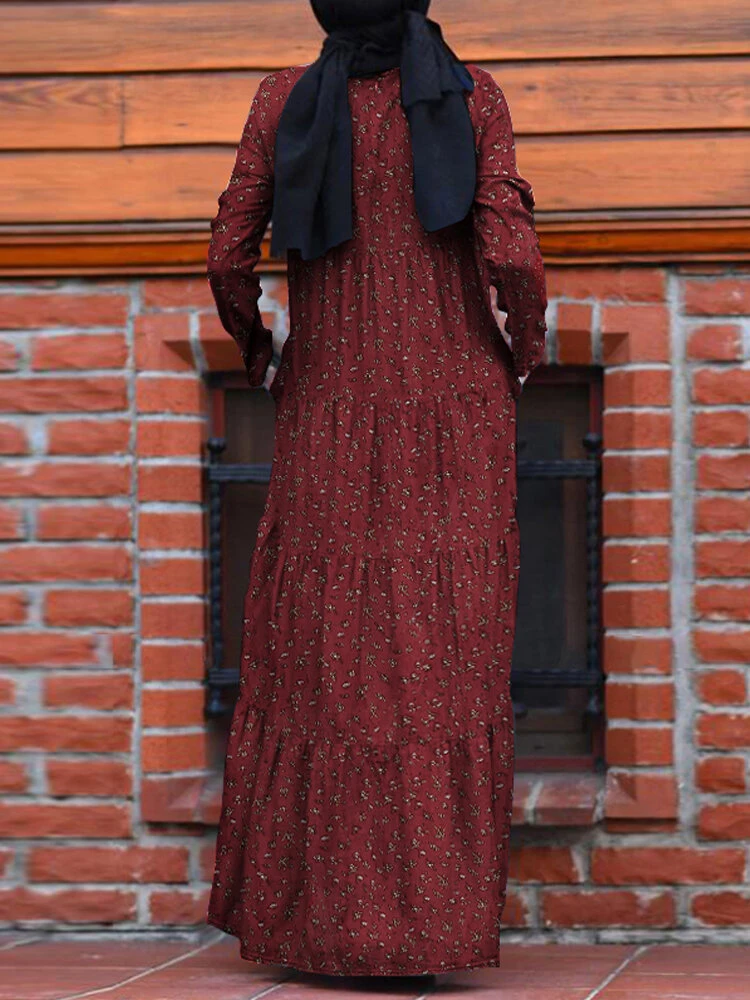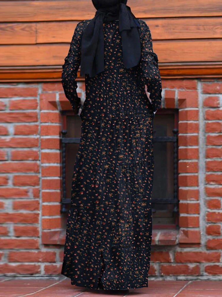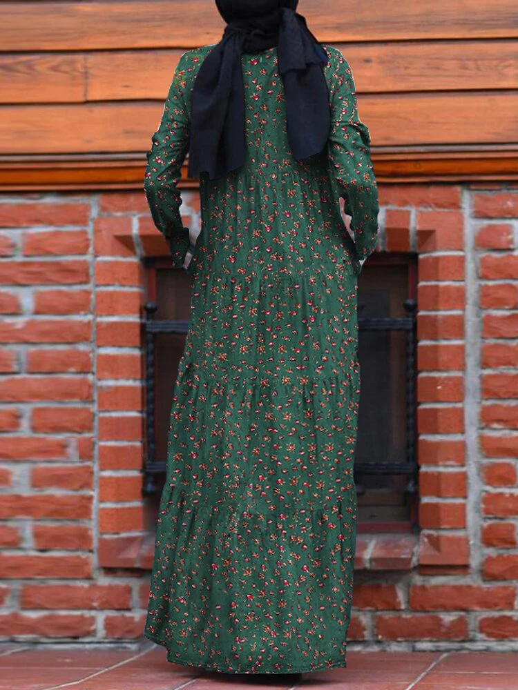 Color: Navy, Green, Red Style: Ethnic, Casual Occasion: Casual Material: Polyester Pattern: Floral Print Design Element: Pocket, Print, Patchwork Season: Spring, Autumn Hem Design: Regular Hem Sleeves Length: Long Sleeve Sleeves Type: Regular Sleeve Length: Maxi Fit Type: Loose Package included:1*Dress