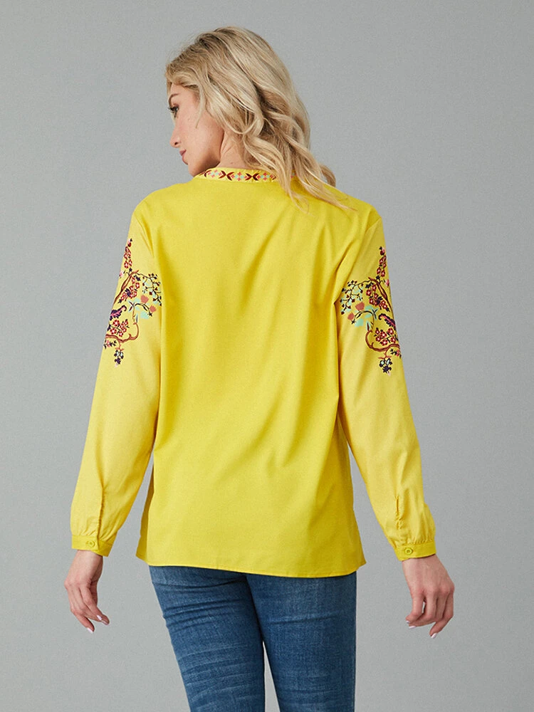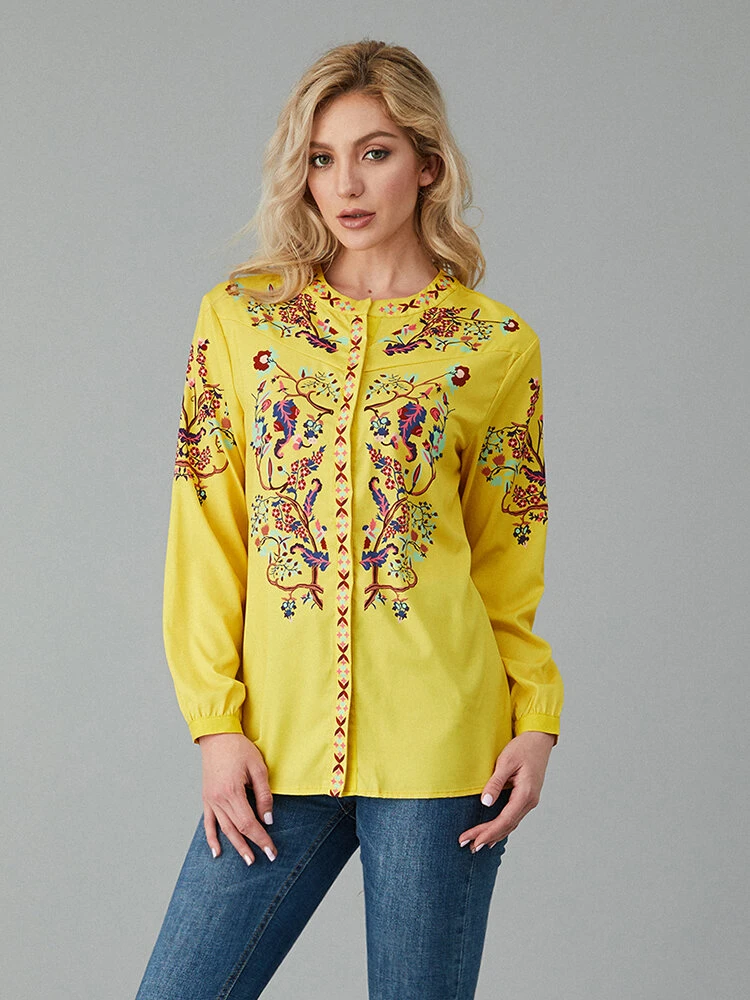Color: Yellow, White Occasion: Casual Pattern: Floral Print Sleeves Length: Long Sleeve Season: Autumn, Spring Material: Polyester Design Element: Print Package included:1*Blouse