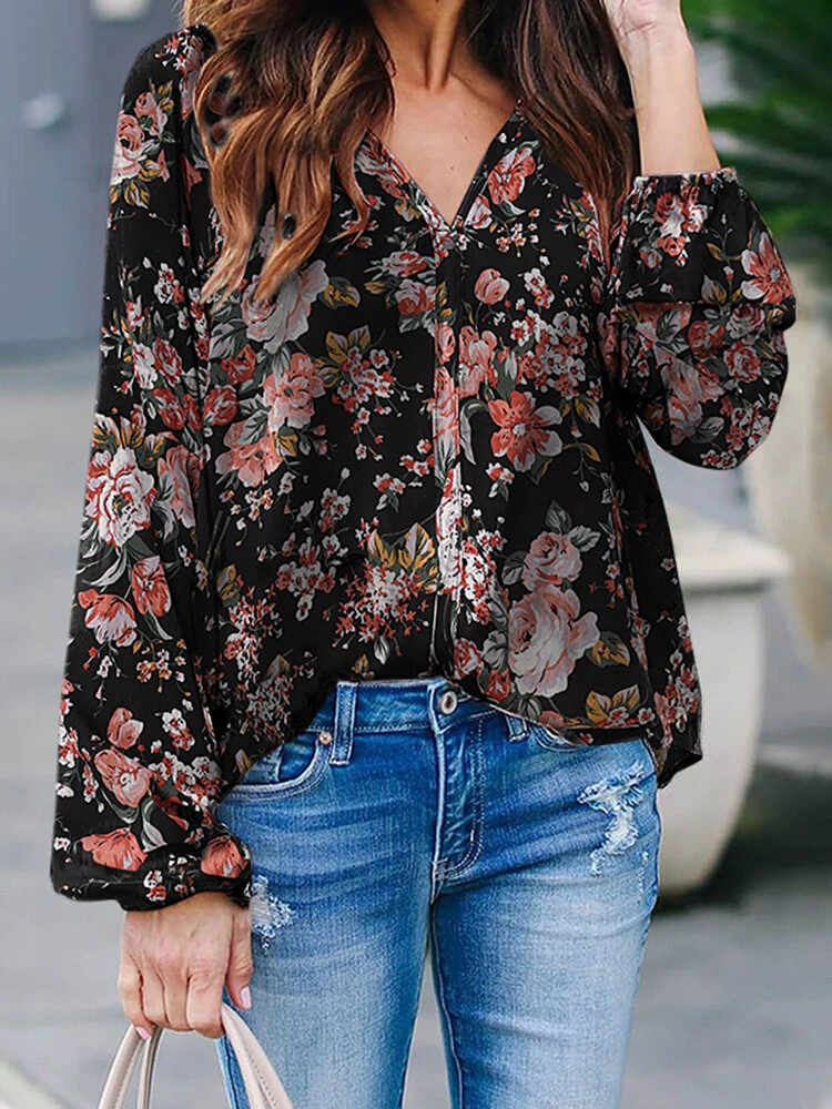 Be the first to review “Flower Print V Neck Long Sleeve Casual Blouse” Cancel reply