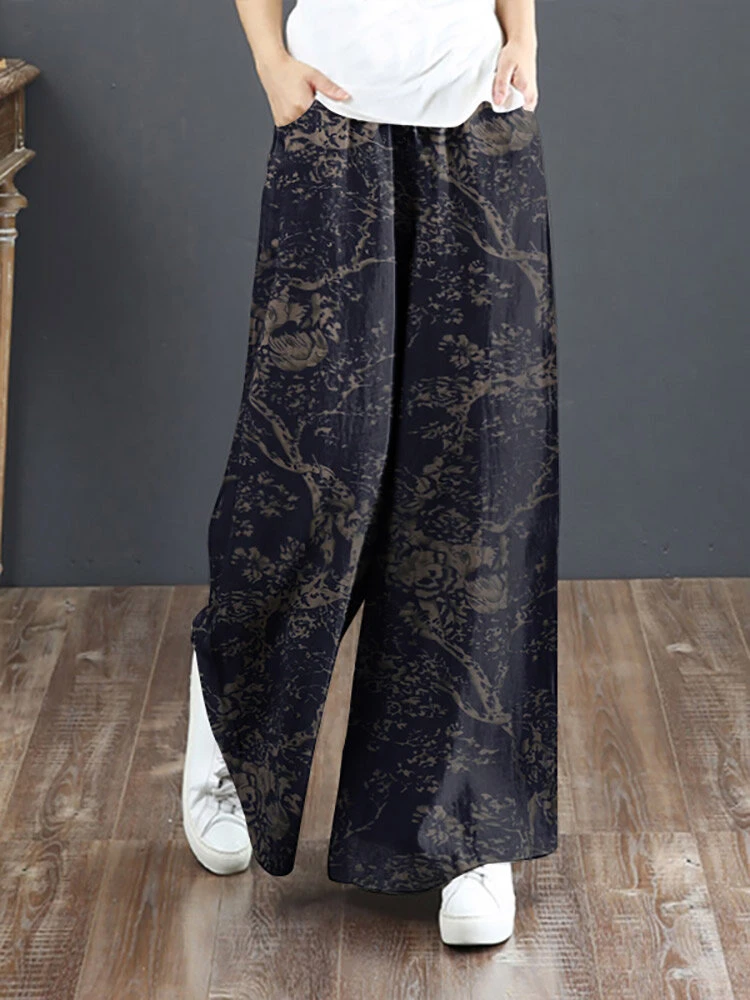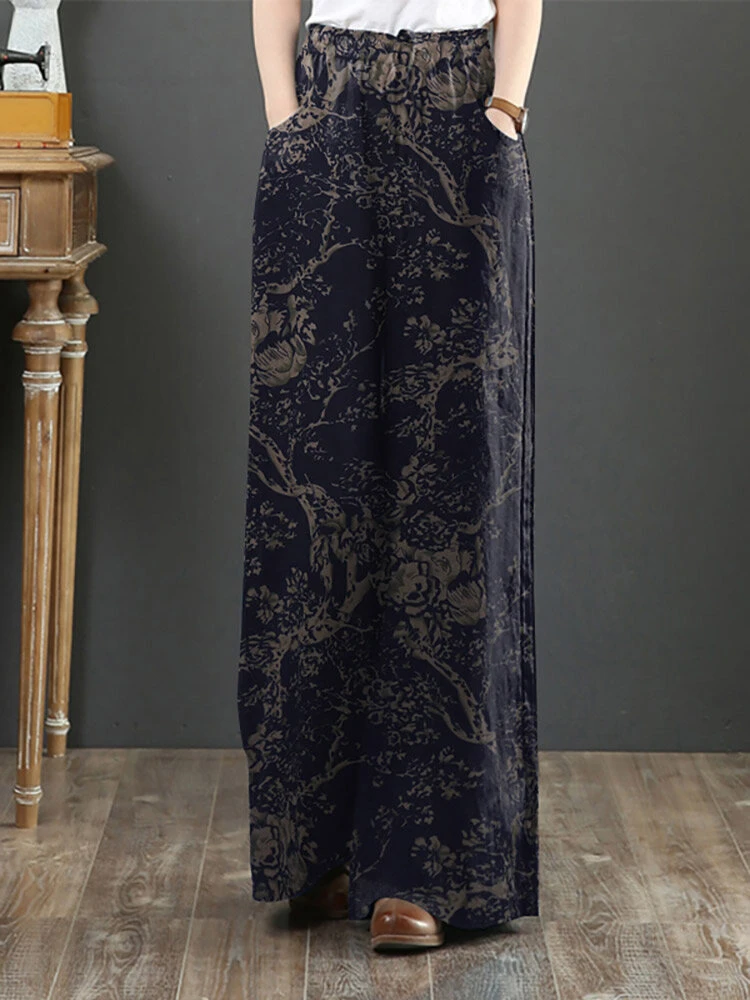 Color: White Material: Linen, Cotton Pattern: Plants Waist Design: High Waist Design Element: Pocket Style: Casual Package Included:1*Pants