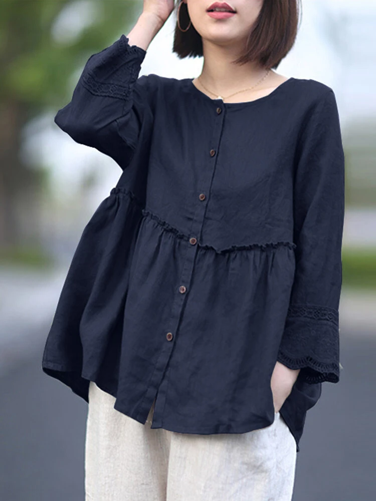 Be the first to review “Lace Pleated Long Sleeve Plus Size Loose Blouse” Cancel reply