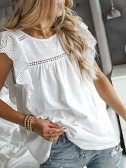 Be the first to review “Lace Ruffle Sleeve Solid Crew Neck Loose Blouse” Cancel reply