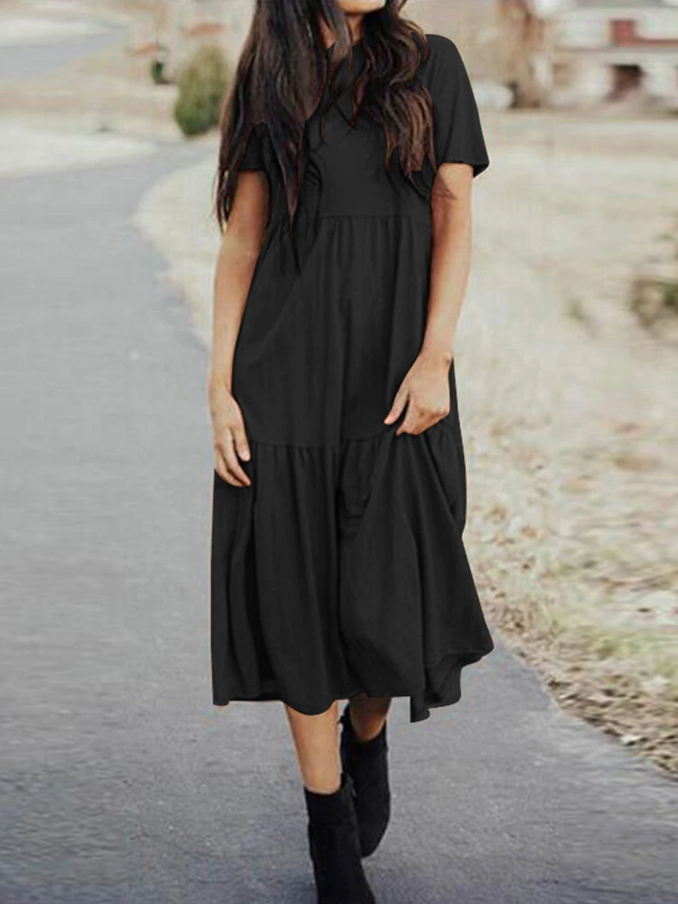 Be the first to review “Layered Pleated Short Sleeve A-line Plus Size Dress” Cancel reply