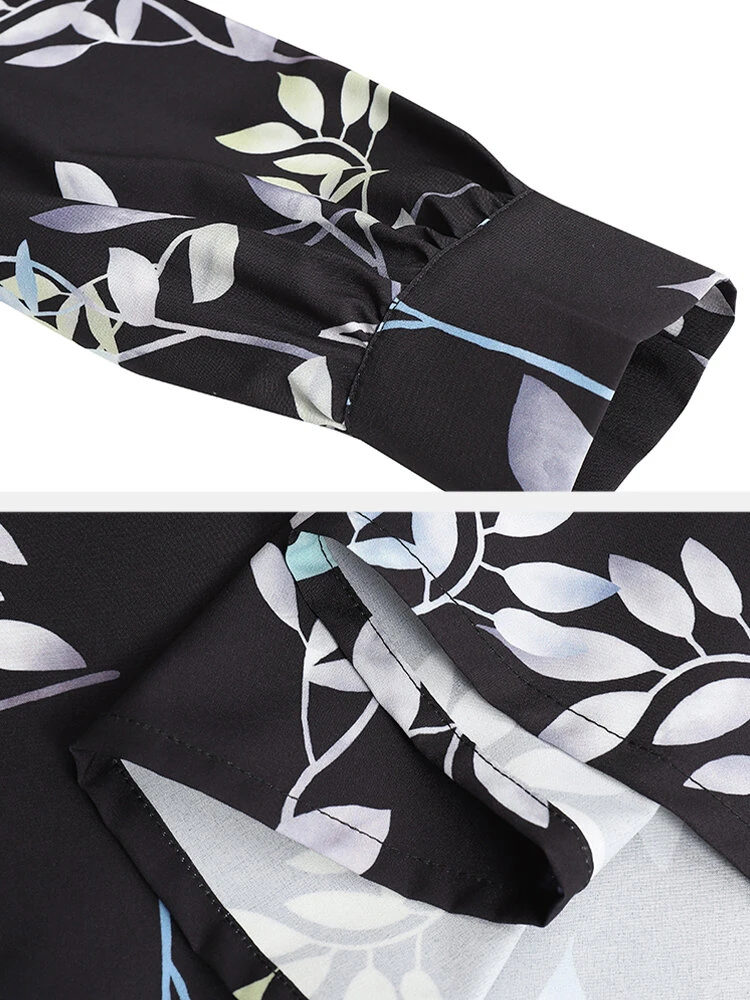 Color: Black, Blue, Green, Pink Style: Casual Occasion: Casual Material: Polyester Pattern: Leaf Design Element: Print Season: Spring, Autumn Collar: O-neck Sleeves Length: Long Sleeve Length: Long Package included:1*Dress