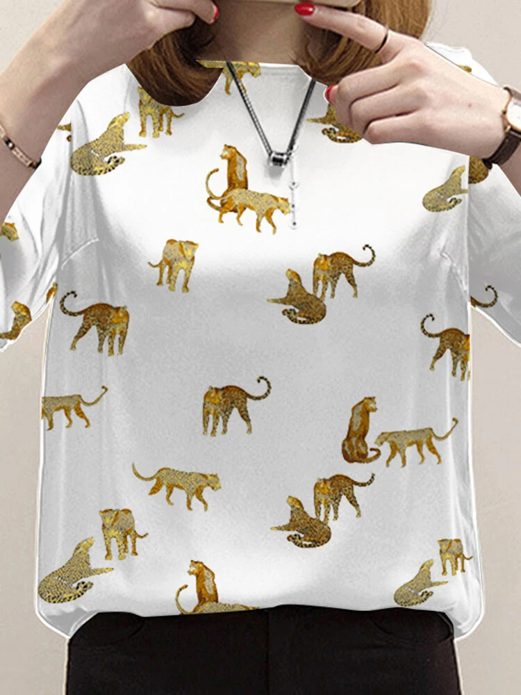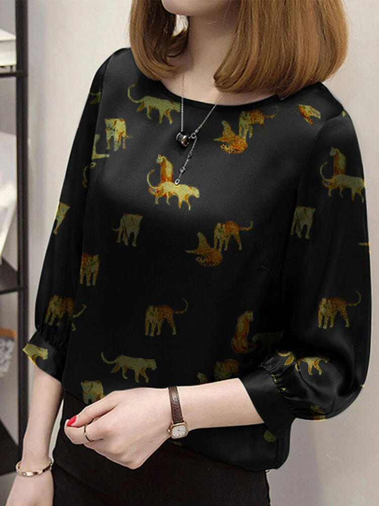 Color: White, Green, Black Material: Polyester Pattern: Leopard, Animals Occasion: Everyday Style: Casual Sleeves Length: 3/4 Length Sleeve Collar: Crew Neck Season: Autumn Package Included:1*Blouse