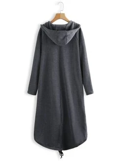Women Zipper Long Sleeve Irregular Hem Hooded Coat