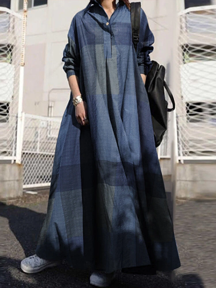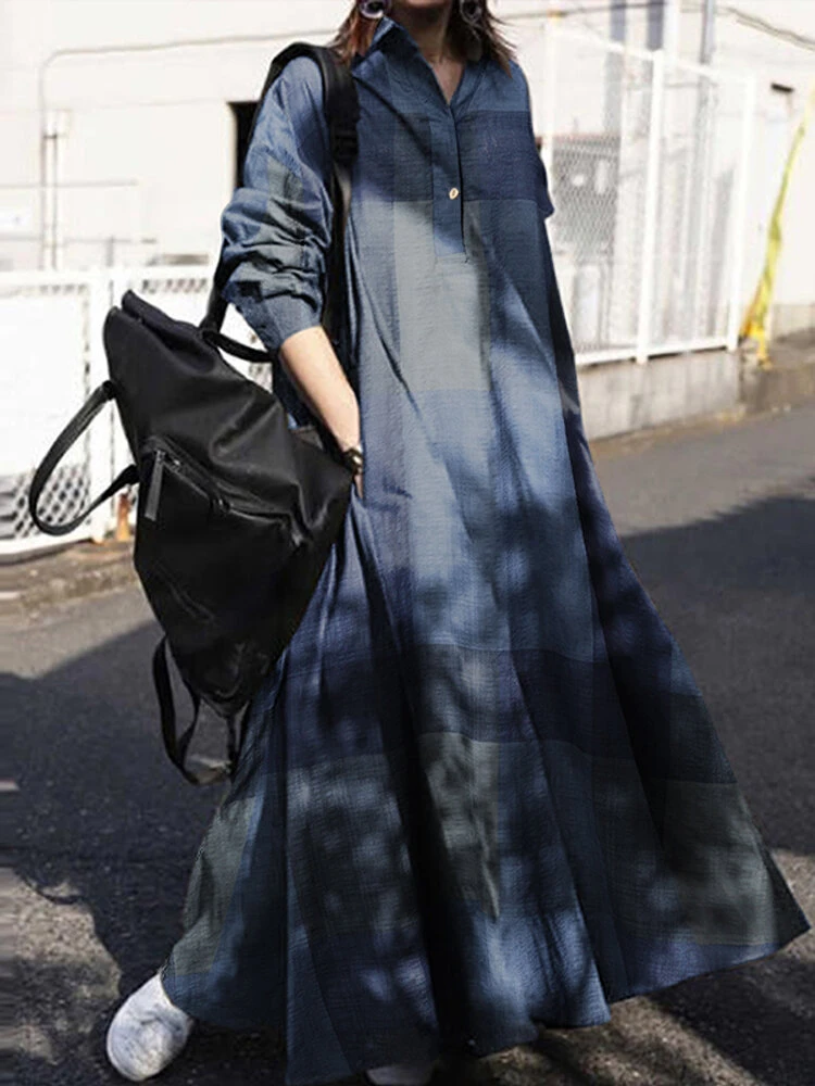 Be the first to review “Plaid Print Lapel Long Sleeve Button Plus Size Maxi Dress With Pockets” Cancel reply