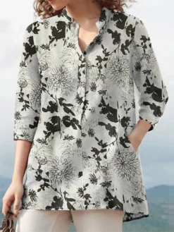 Be the first to review “Plants Print Button Pocket Stand Collar 3/4 Sleeve Blouse” Cancel reply