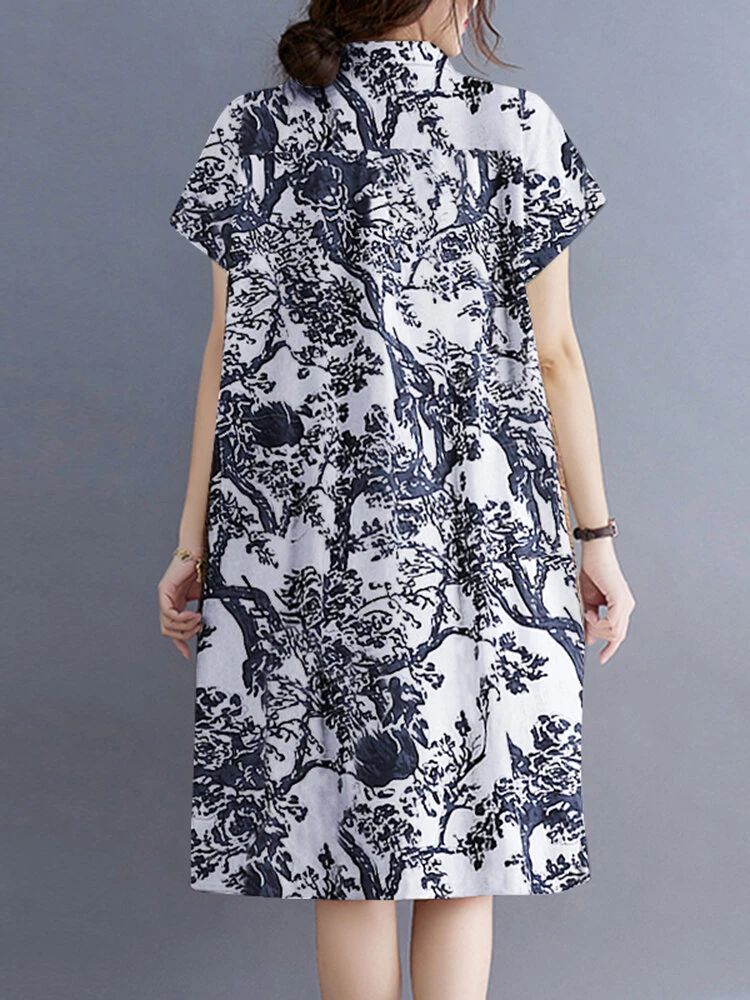 Be the first to review “Plants Print Lapel Button Short Sleeve Dress” Cancel reply