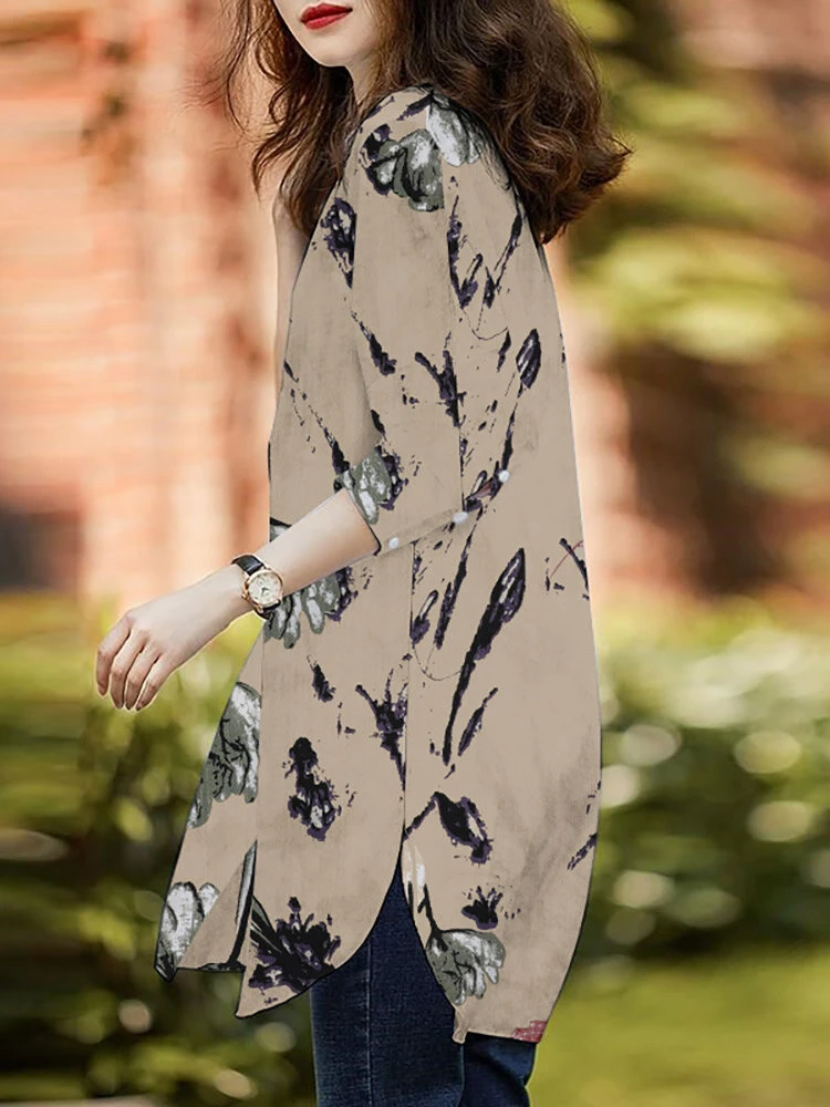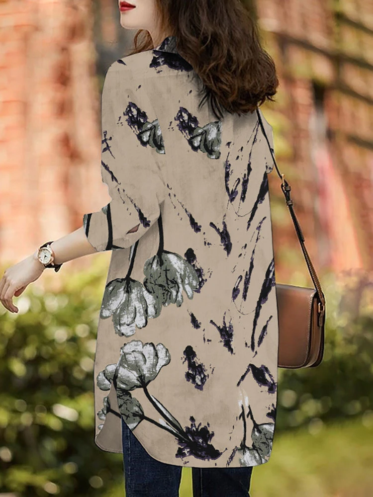 Color: Apricot, Green Material: Polyester Pattern: Plants Occasion: Everyday Style: Casual Sleeves Length: Long Sleeve Collar: Stand Collar Season: Autumn, Spring Hem Design: Slit Hem, Curved Hem Package Included:1*Blouse