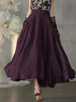 Casual Solid Color Loose Elastic Waist Plus Size Skirt