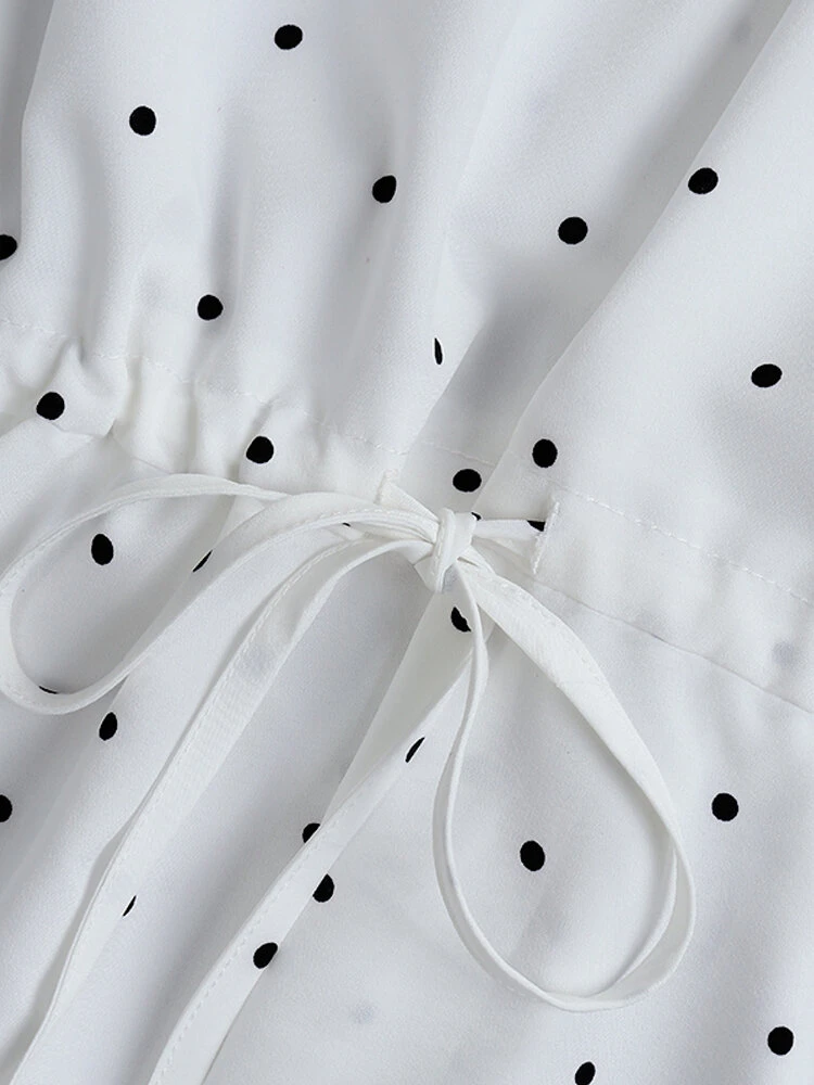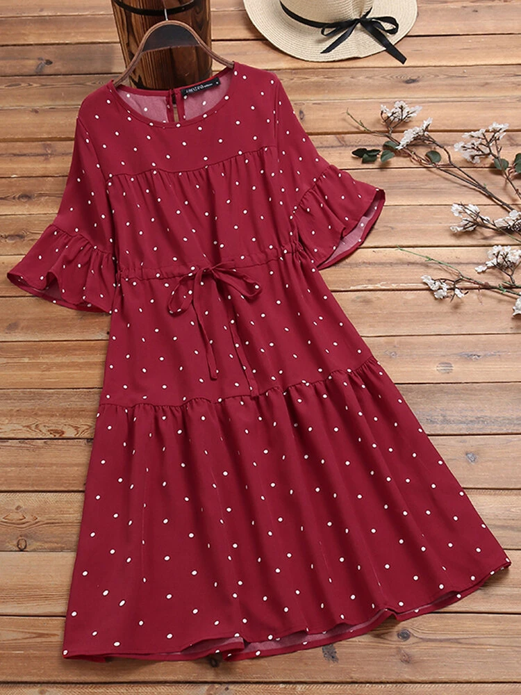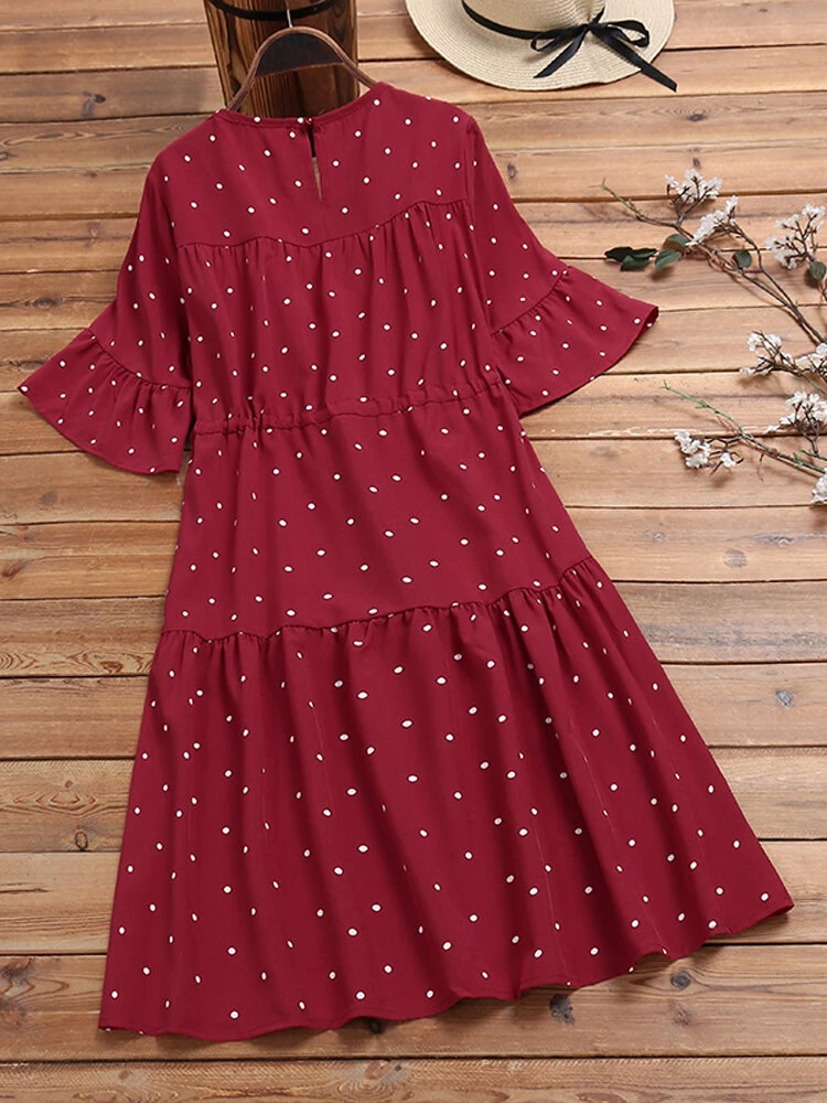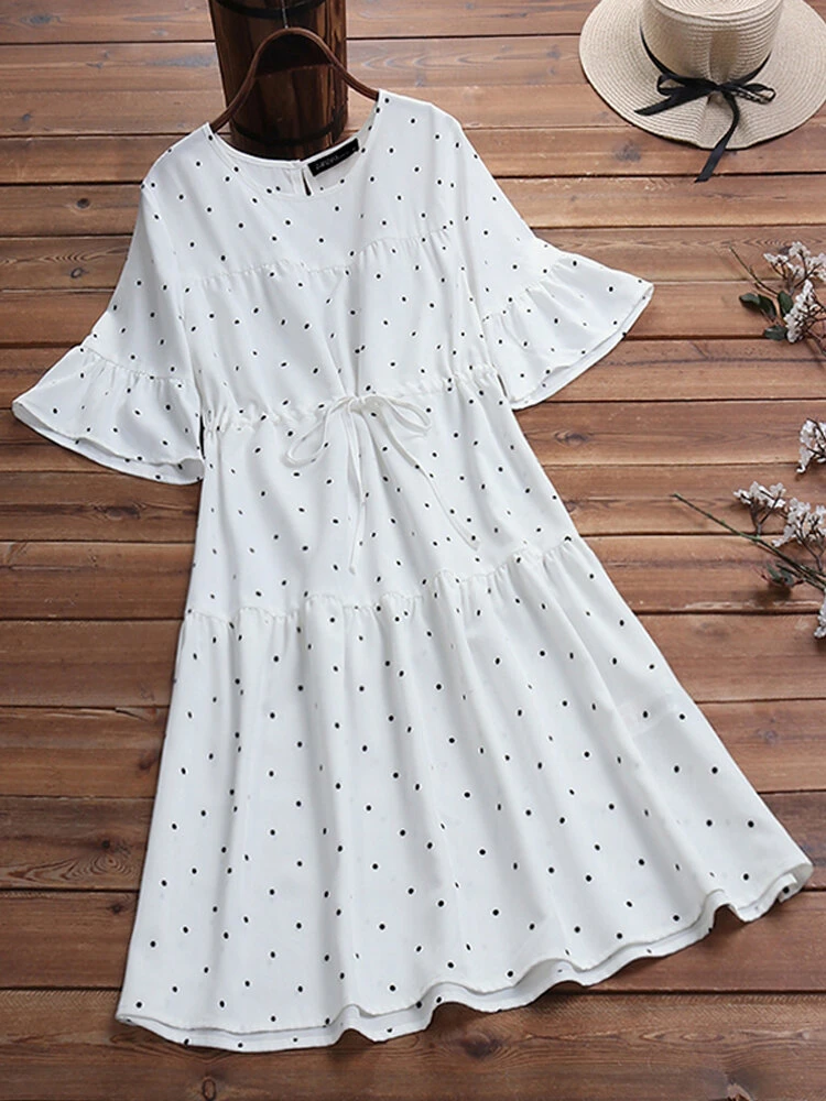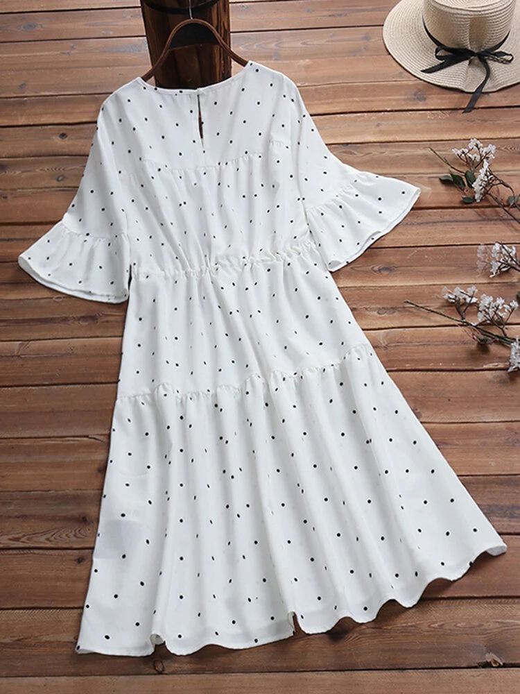 Polka Dot Print Elastic Waist Ruffle Sleeve Plus Size Casual Dress