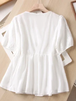 Women Ethnic Paisley Print Patchwork Cotton Short Sleeve Blouse
