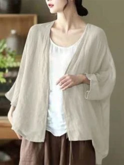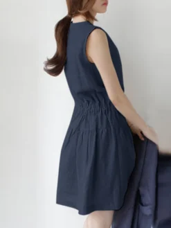 Women Solid Notched Neck Drawstring Waist Short Sleeve Dress