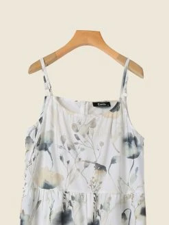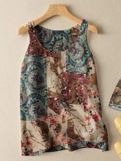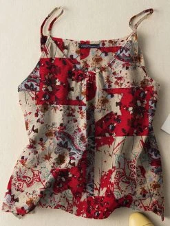 Women Vintage Ethnic Floral Print Cotton Spaghetti Strap Cami