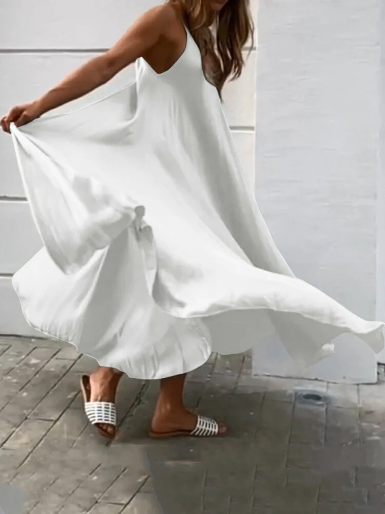 Solid Backless Adjustable Strap Sleeveless Casual Maxi Dress
