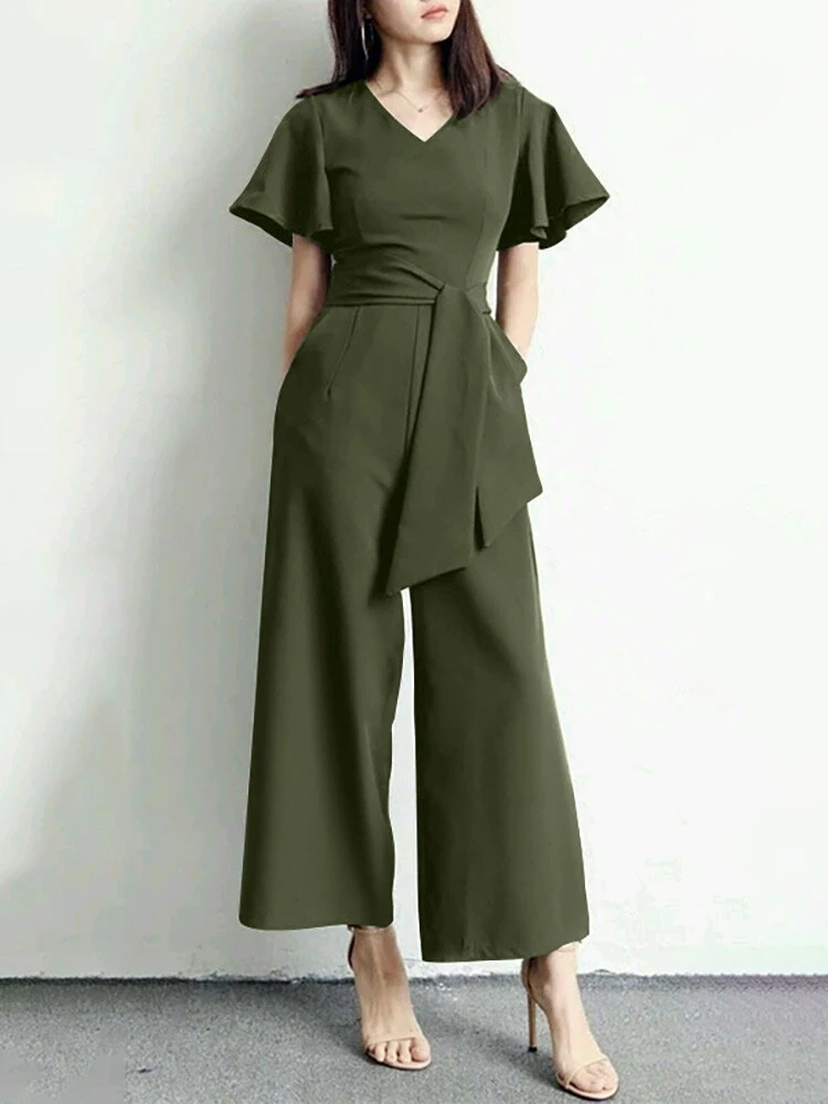 Be the first to review “Solid Belt Pocket High Waist Ruffle Sleeve Wide Leg Jumpsuit” Cancel reply